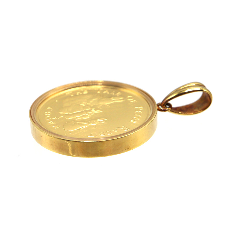 人気のピーターラビットデザインのコインを使用した、K18枠付きペンダントトップです。