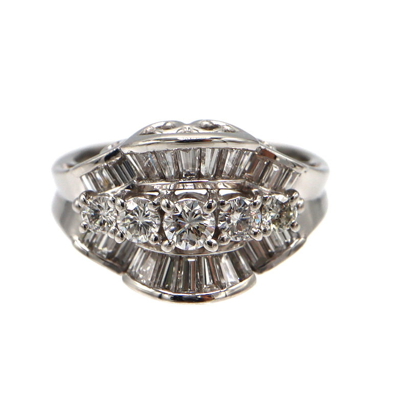 上質なプラチナ(Pt900)に、存在感のある1.31カラットのダイヤモンドを贅沢にセッティングしたリングです。