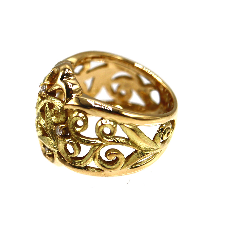 上質なK18素材に、0.095カラットのダイヤモンドをあしらったリングです。