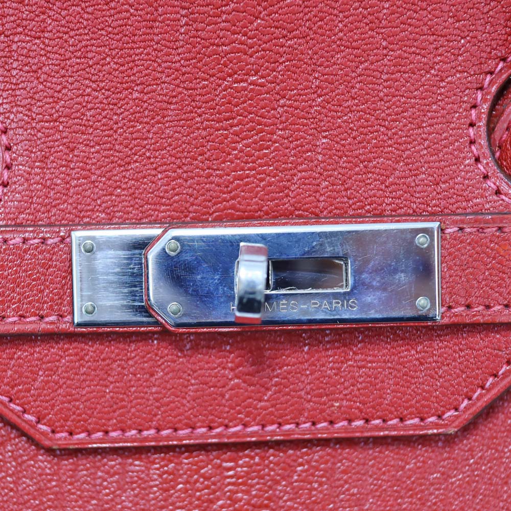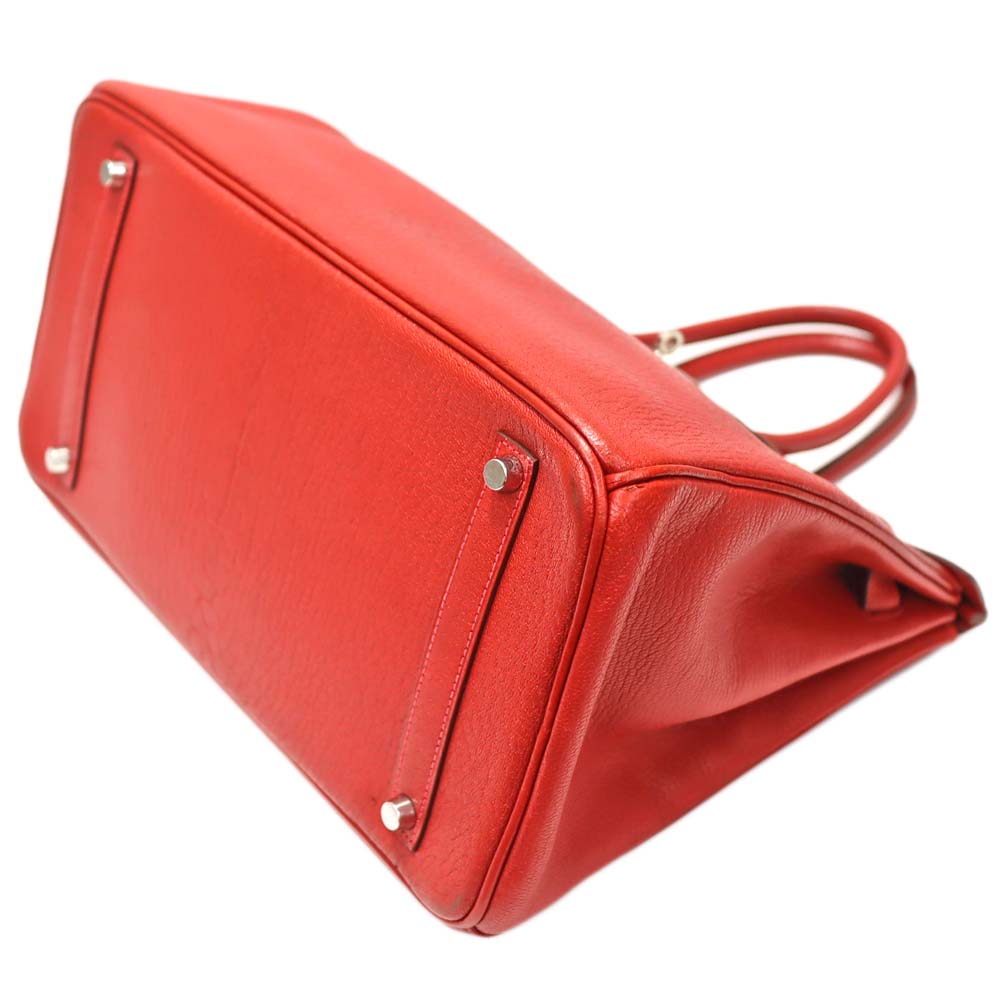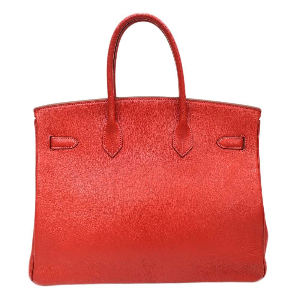 世界中の女性が憧れるバッグ「バーキン」 やや大きめサイズの「35」は通勤等に書類が入る大きさで人気のサイズです。 シェーブルコロマンデルという雌の子ヤギ革素材を使用したこちらの商品はあまり多く出回らない珍しいアイテムです。 素材特有の光沢と、柔らかすぎない芯のあるしっとりとした手触りでバーキンの高級感を際立てます。 ヴァーミリオンの鮮やかなレッドカラーはシンプルなバーキンのデザインをより鮮明にし、目を惹くアイテムとなっています。 お探しの方はこの機会に是非いかがでしょうか。