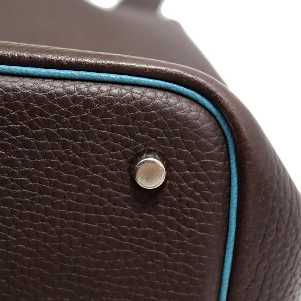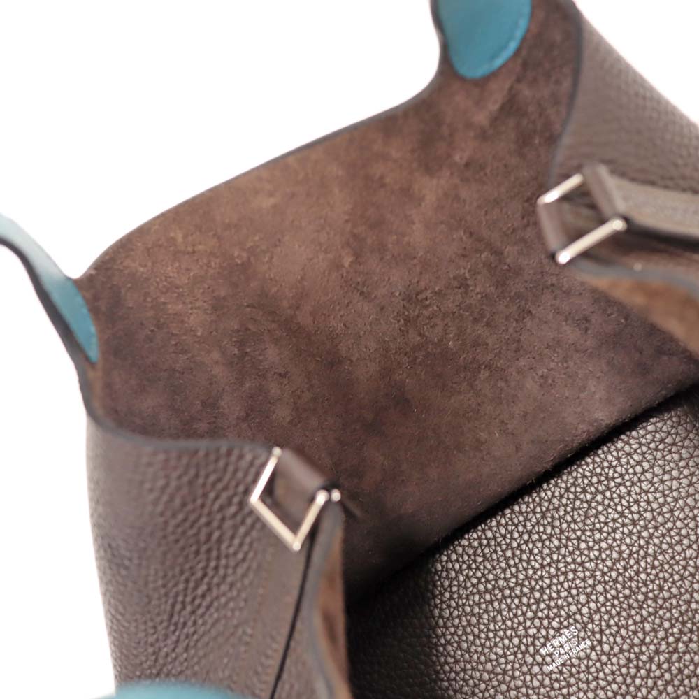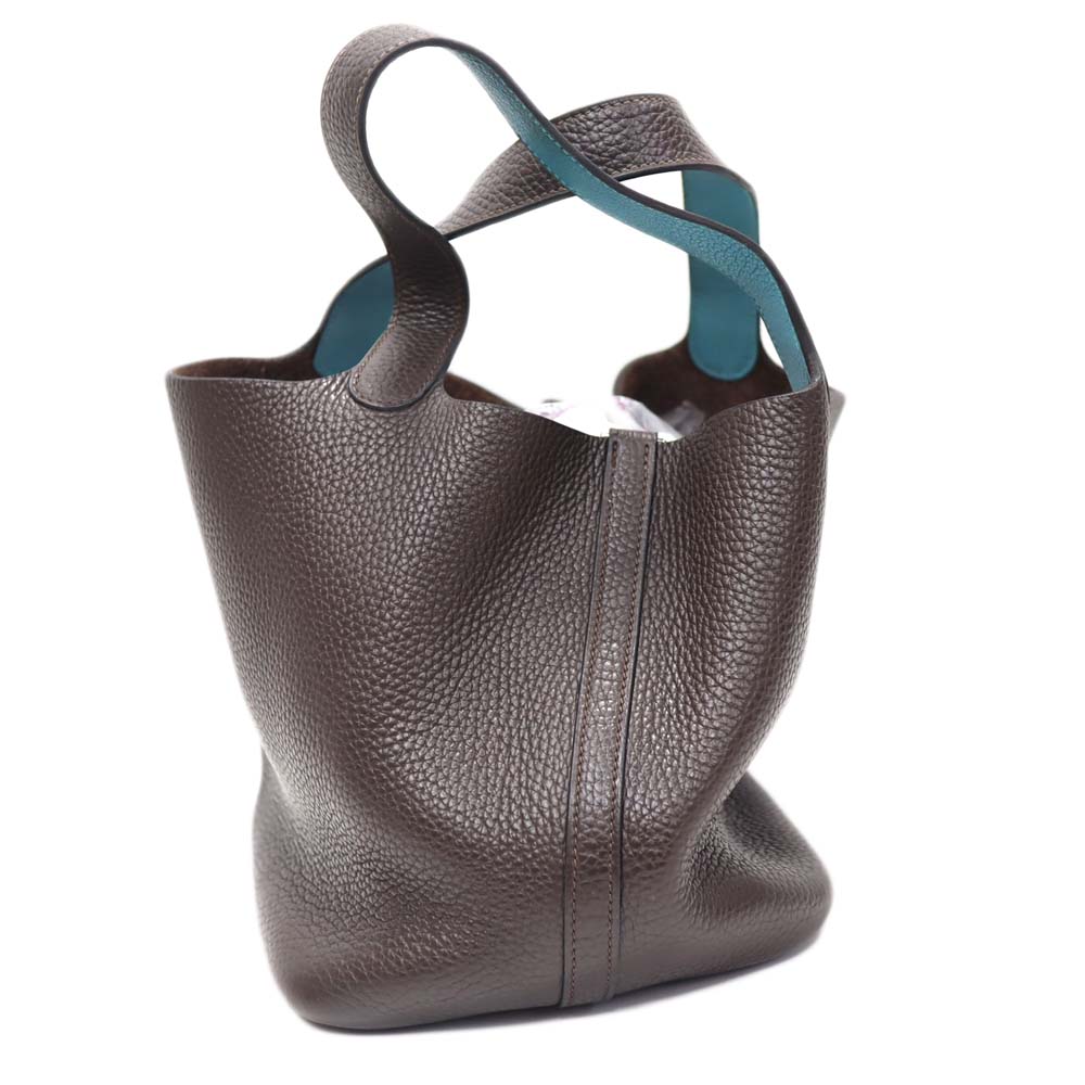 商品説明 | エルメスのピコタンMMのご紹介です。 エルメス定番人気のハンドバッグで、幅の広い開口部が特徴のバッグです。 何年経っても人気のピコタンシリーズは様々なシーンで活用していただけるシンプルで上品なお品です。 エベンヌ×ターコイズのカラーリングが上品かつ可愛らしい印象のアイテム。 トリヨンクレマンスの手触りの良さとシェーブルミゾールの使い込んでいくうちに柔らかくなっていく性質がマッチした商品となっており使いやすいアイテムとなっております。 お探しの方はこの機会にぜひいかがでしょうか。