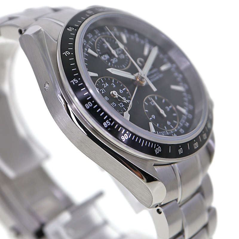 オメガの代表作「スピードマスター トリプルカレンダー」から 美しく煌びやかなるブラックダイヤルはオンでもオフでも使える オールマイティさを兼ね備えています。 トリプルカレンダーを搭載したモデルでありながら リーズナブルなプライスも見逃せません オメガの熟練した技術力を見事に表現した素晴らしい時計です。 お探しの方はこの機会に是非いかがでしょうか。