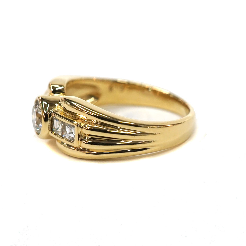 中心のダイヤとそのサイドのラインが華やかなリングです。 手元のアクセントにぜひいかがでしょうか。
