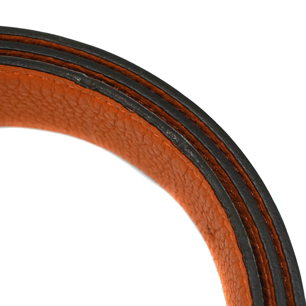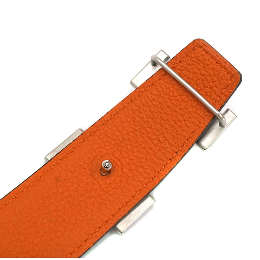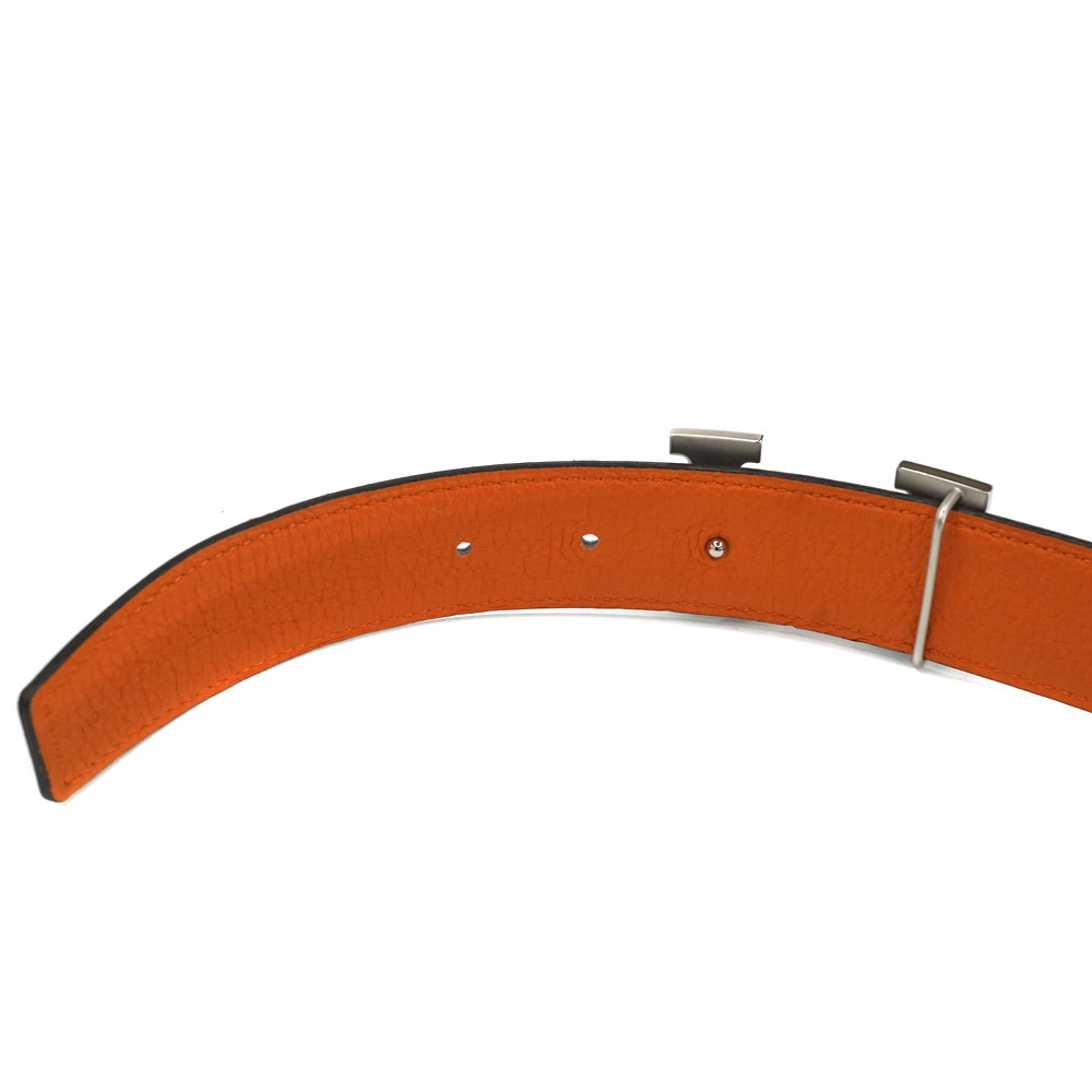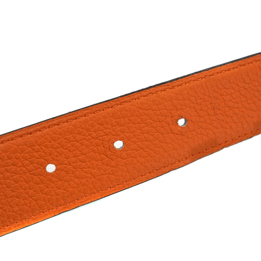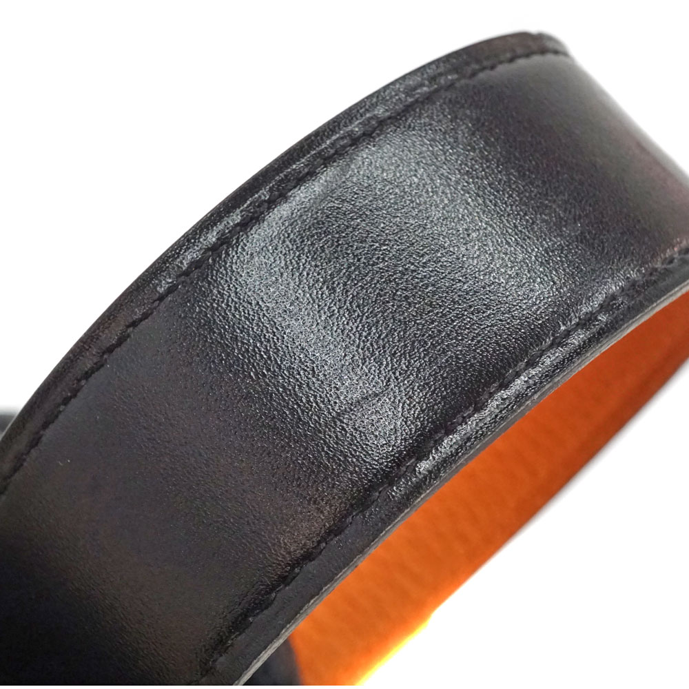 シルバーカラーのHバックルが目を惹くお洒落なベルトです。 ブラックとオレンジカラーのリバーシブルですのでファッションに合わせてお使い頂けます。