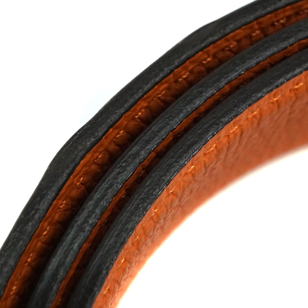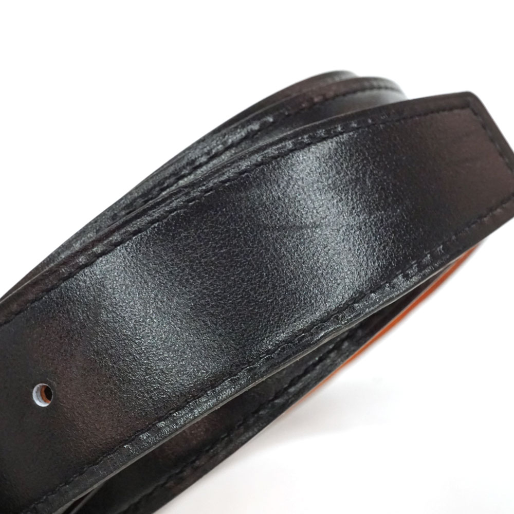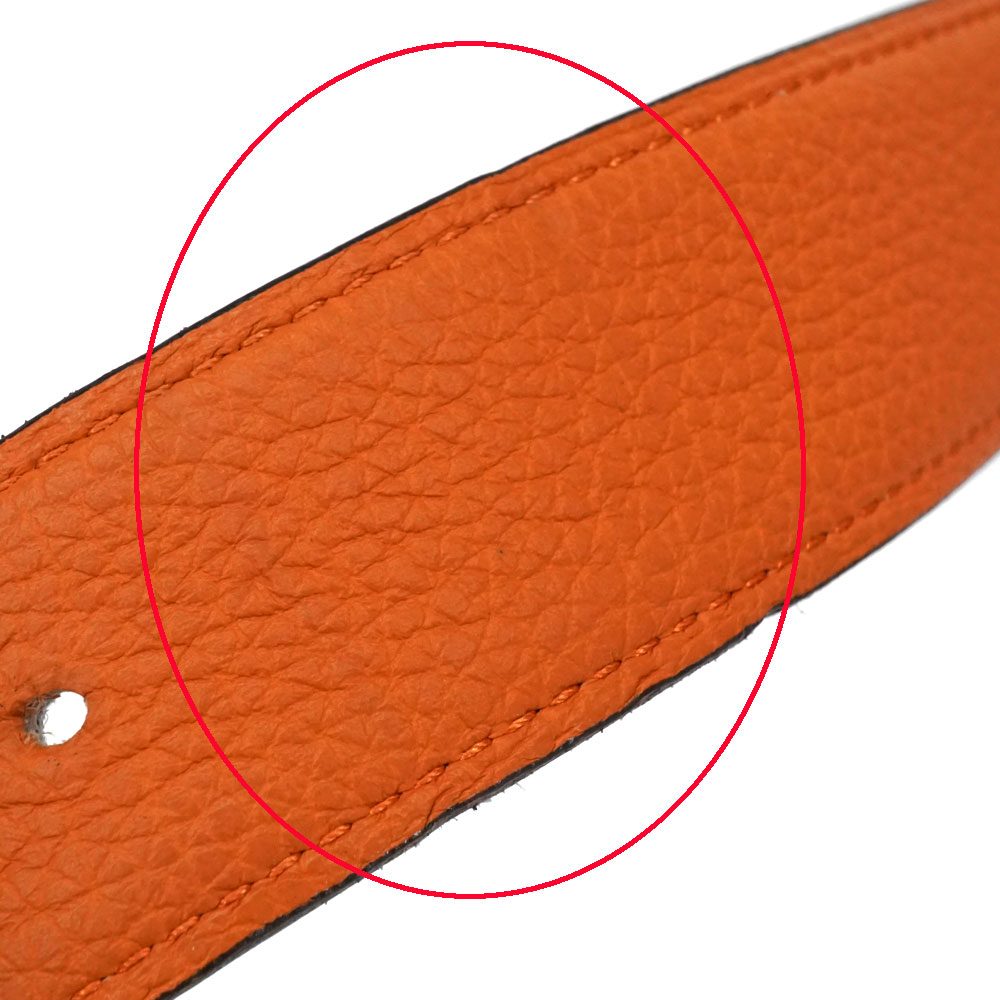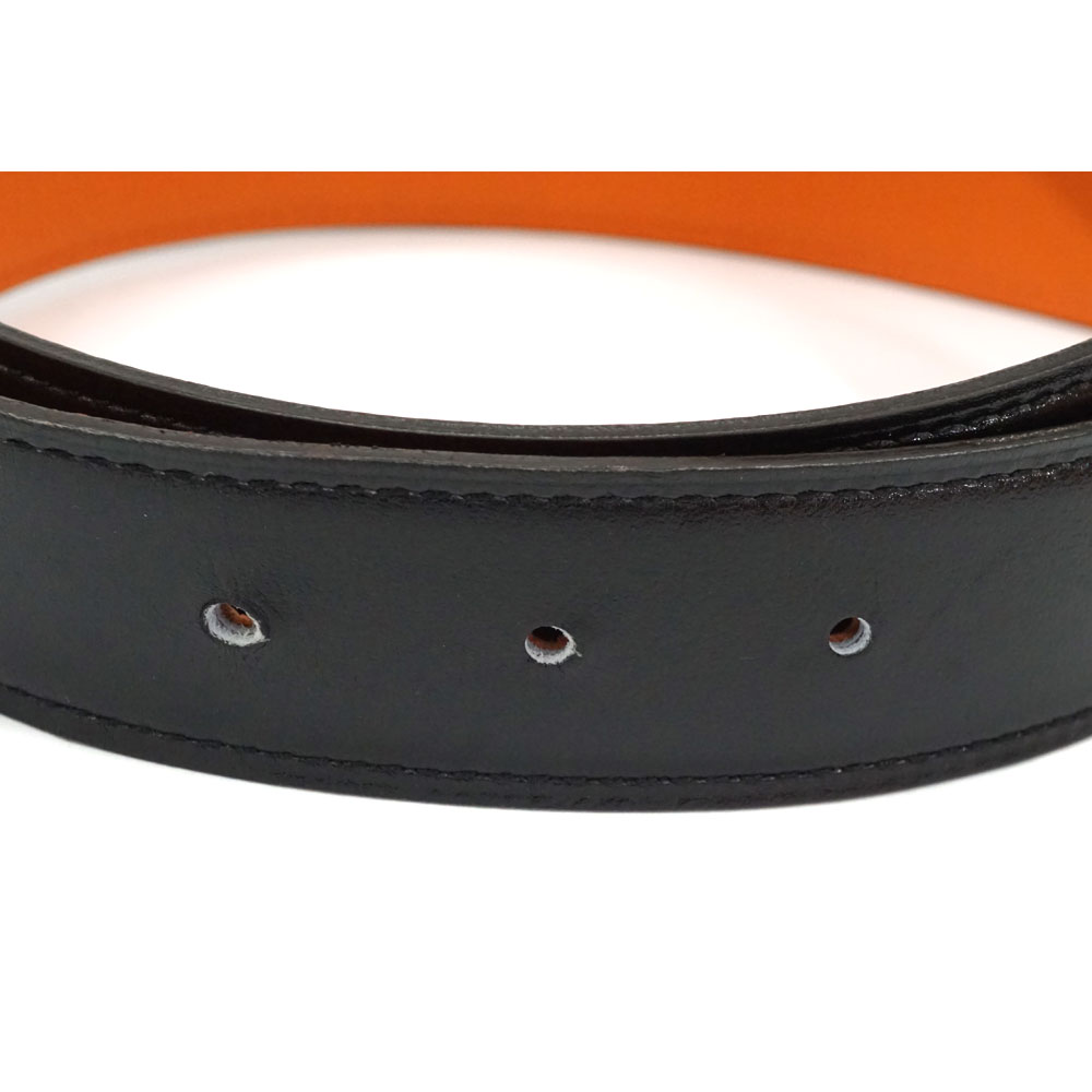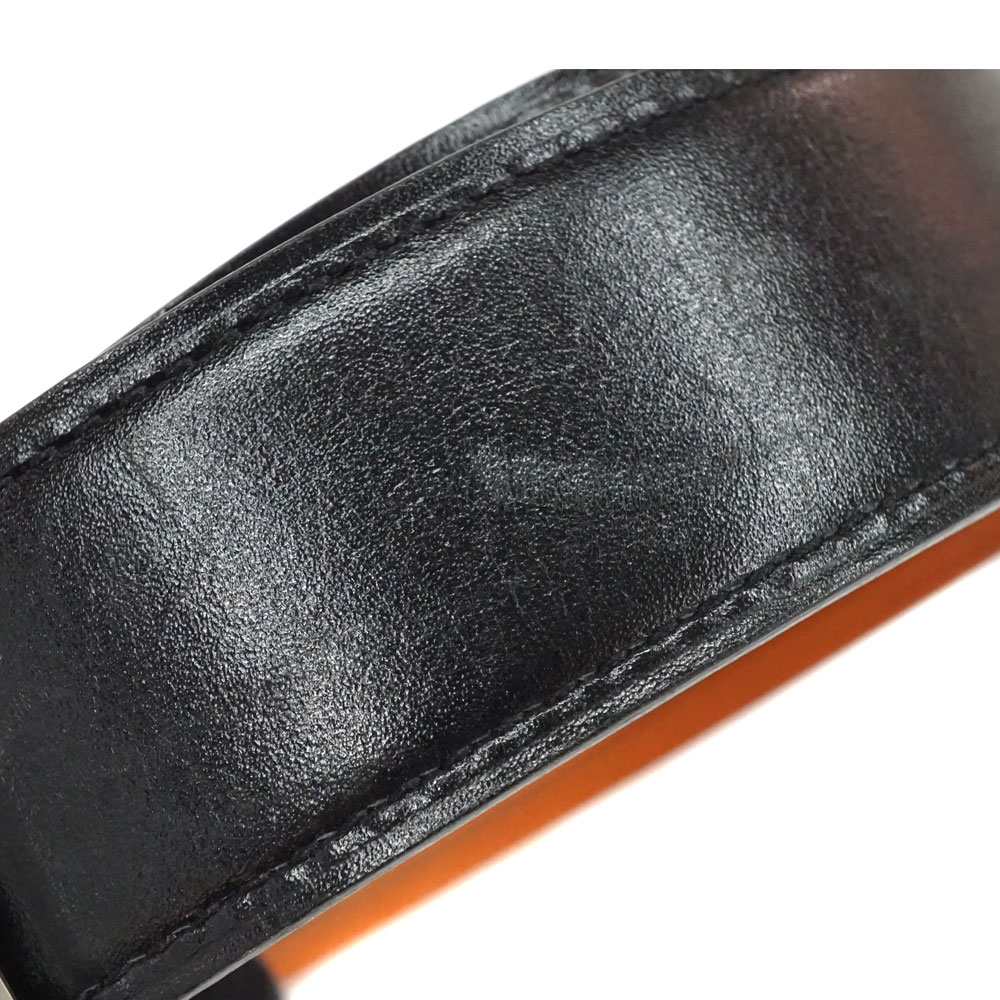 シルバーカラーのHバックルが目を惹くお洒落なベルトです。 ブラックとオレンジカラーのリバーシブルですのでファッションに合わせてお使い頂けます。