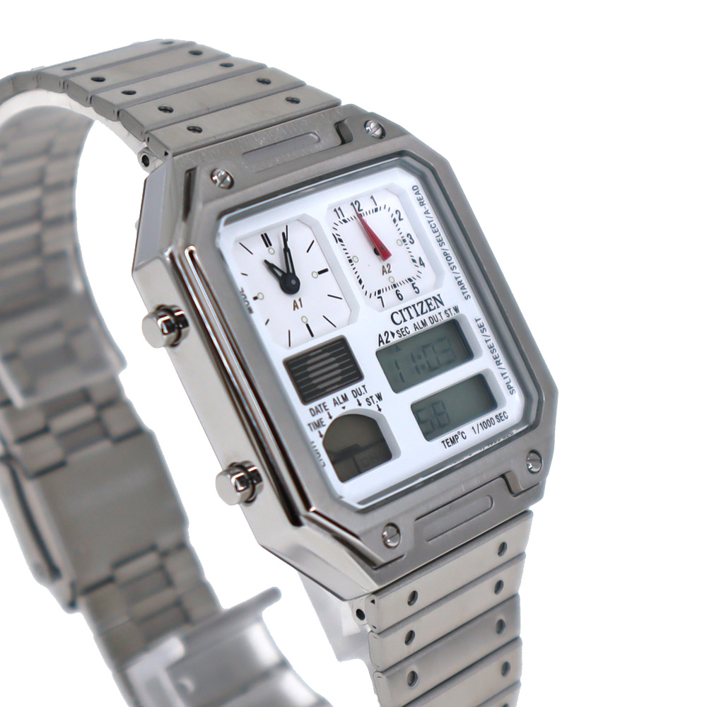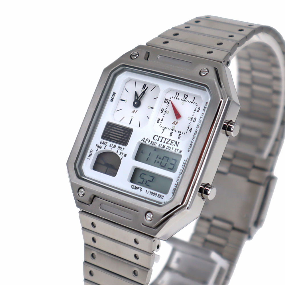 1982年、温度センサー搭載のコンビネーションウオッチとして登場し、個性豊かなデザインで多くのファンに愛された「サーモセンサー」を現代版としてアップデート。 別体ベゼルやバンドの飾り穴が、コンビネーションクオーツのレトロな表情を強調。武骨でありながらも洗練されたデザイン。 ビジネスからカジュアルシーンまで、様々なシーンに調和するデザインです。 お探しの方はこの機会に是非いかがでしょうか。