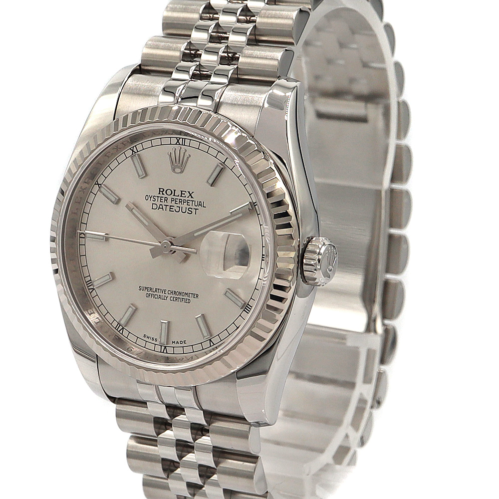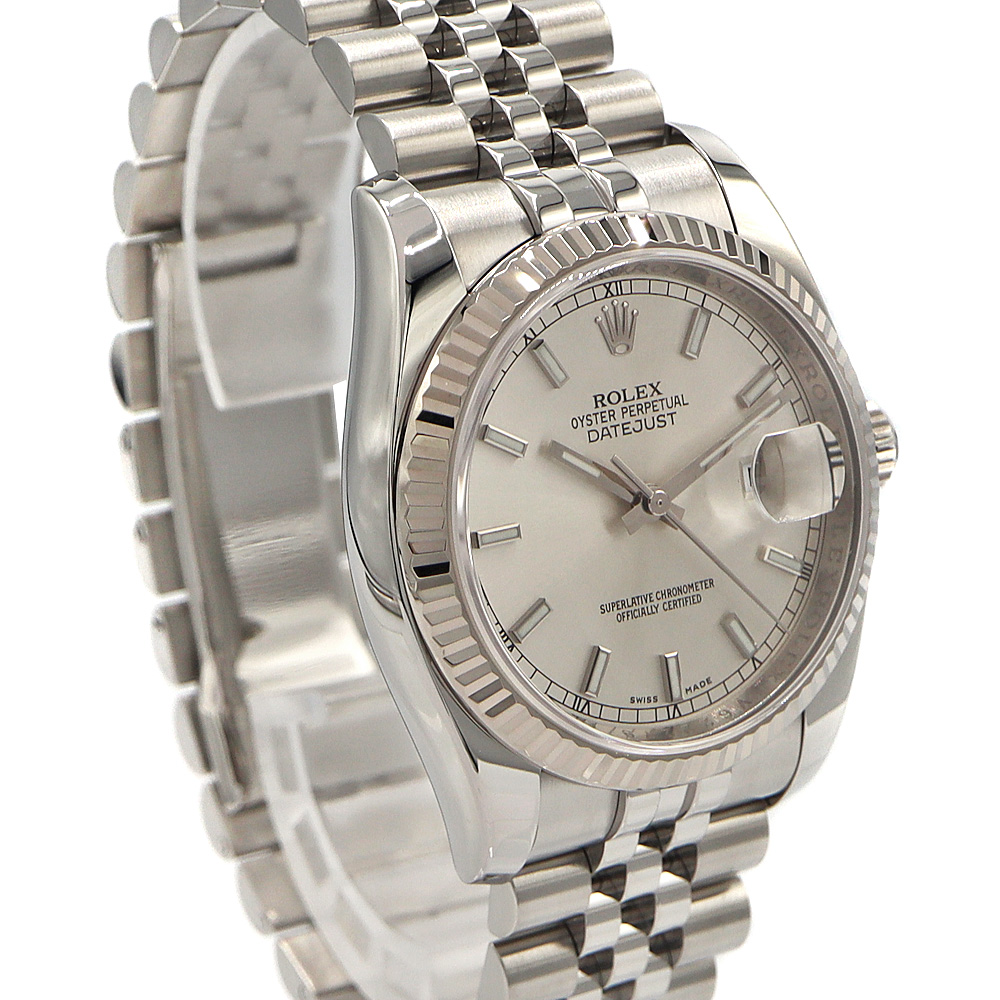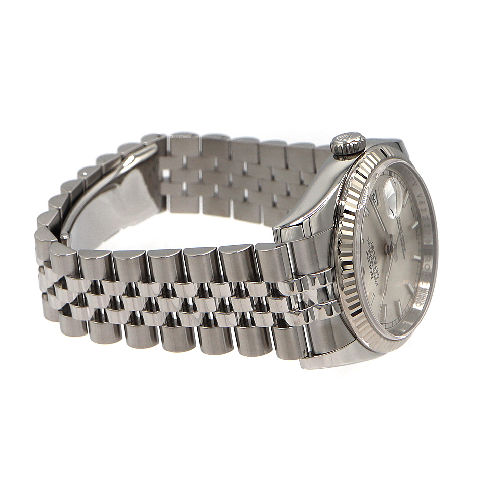 デイトジャストとは午前0時頃瞬時に日付が変わるデイトジャスト機構、全回転式ローターを搭載したパーペチュアル機構、ロレックス三大機構を搭載したモデルです。