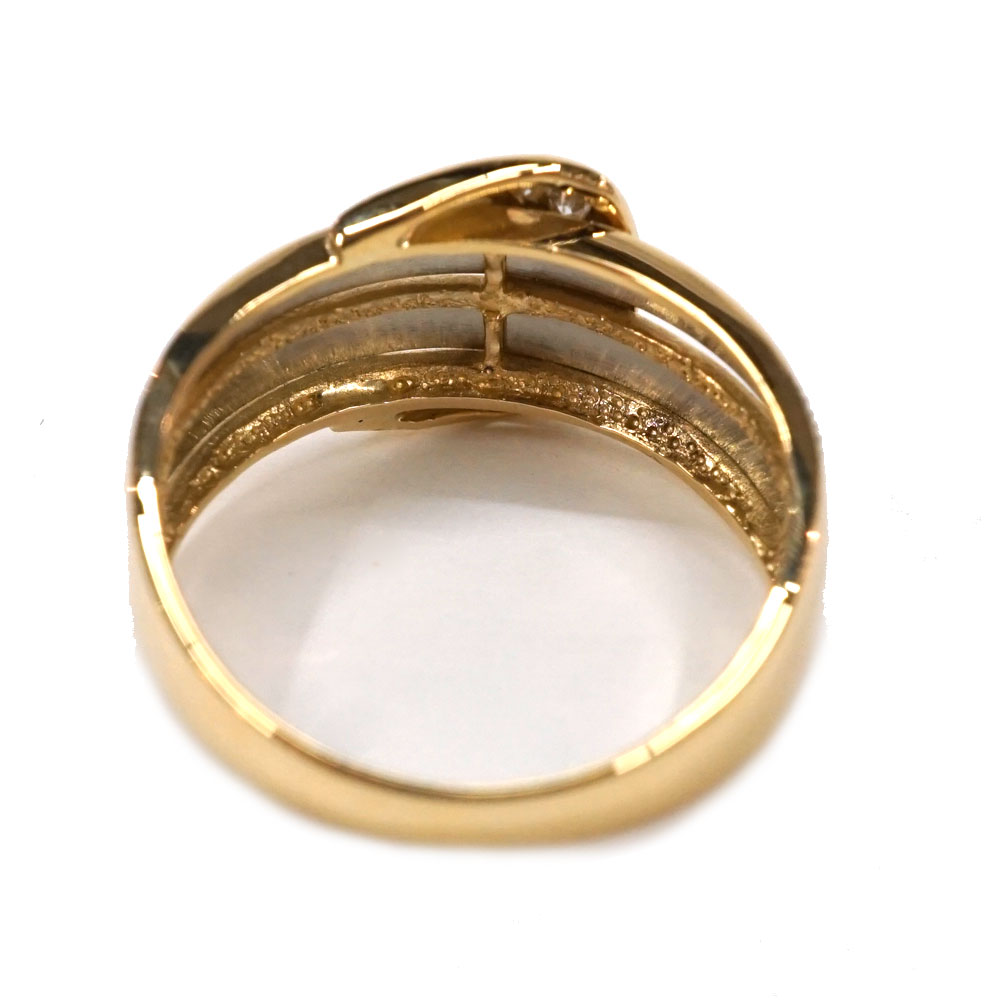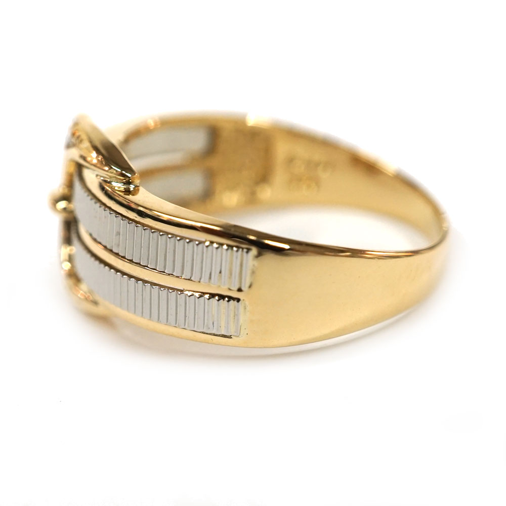ベルトのデザインが印象的なリングです。 2色の地金が使用されており、お手持ちのどんなジュエリーにも合います。 この機会に是非いかがでしょうか。