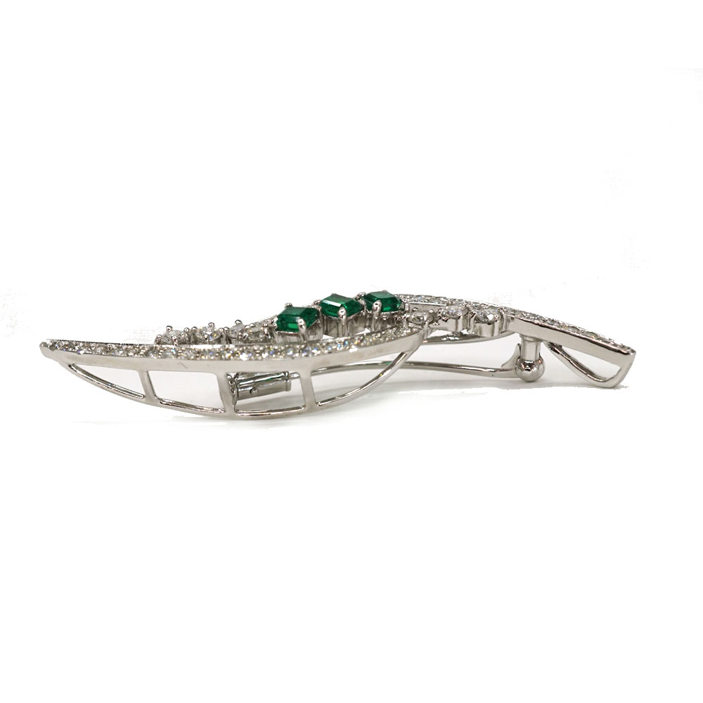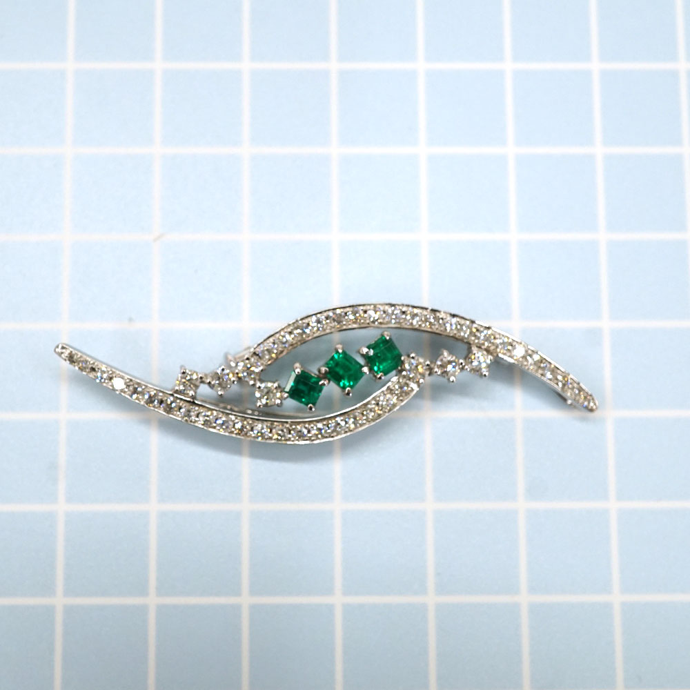 エメラルドとダイヤモンドがセッティングされた上品なブローチです。 洋服のアクセントになります。 お探しの方はこの機会にぜひいかがでしょうか。