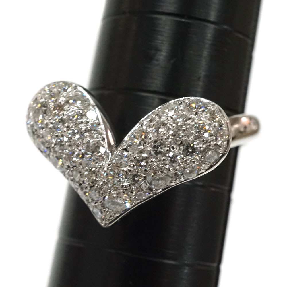 ハートモチーフのダイヤモンドが煌びやかに輝いた可愛らしく上品なデザインのリングです。 お手元のアクセントにぜひいかがでしょうか。