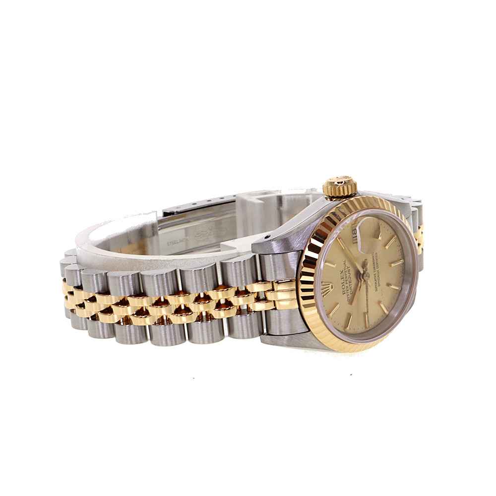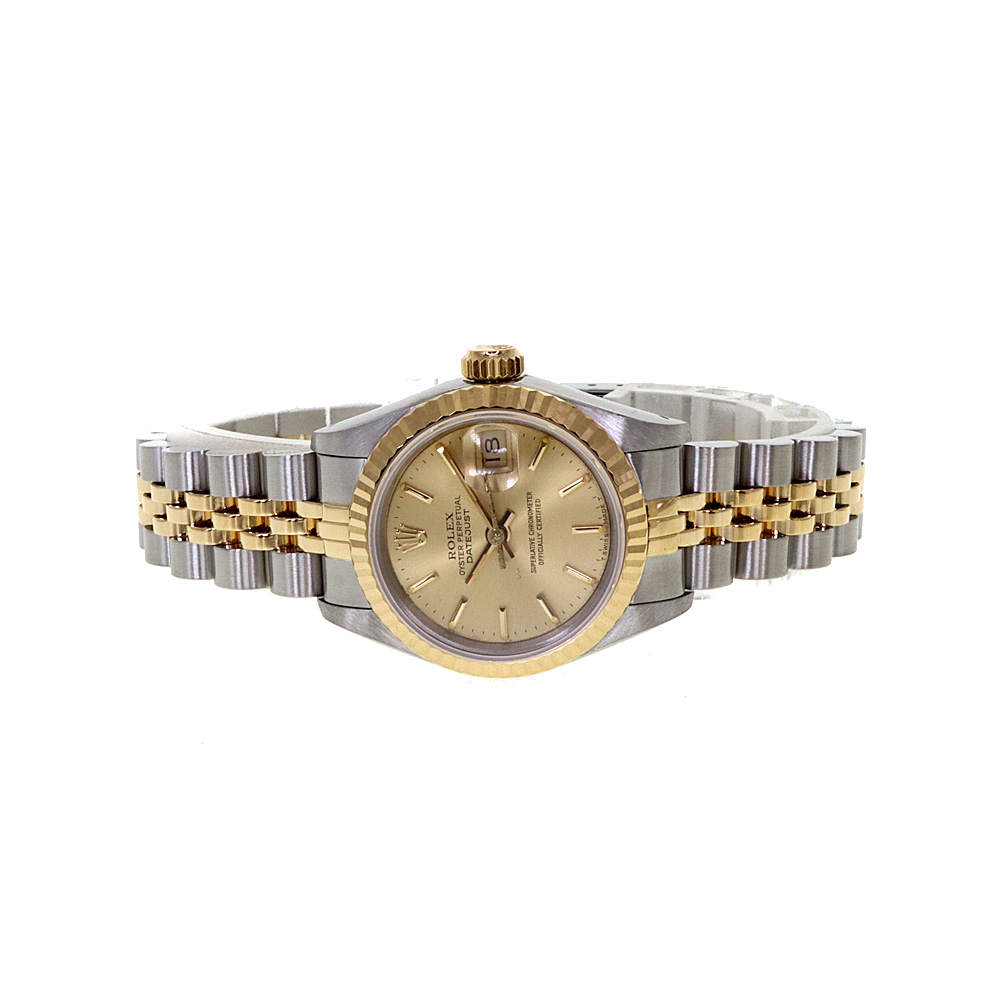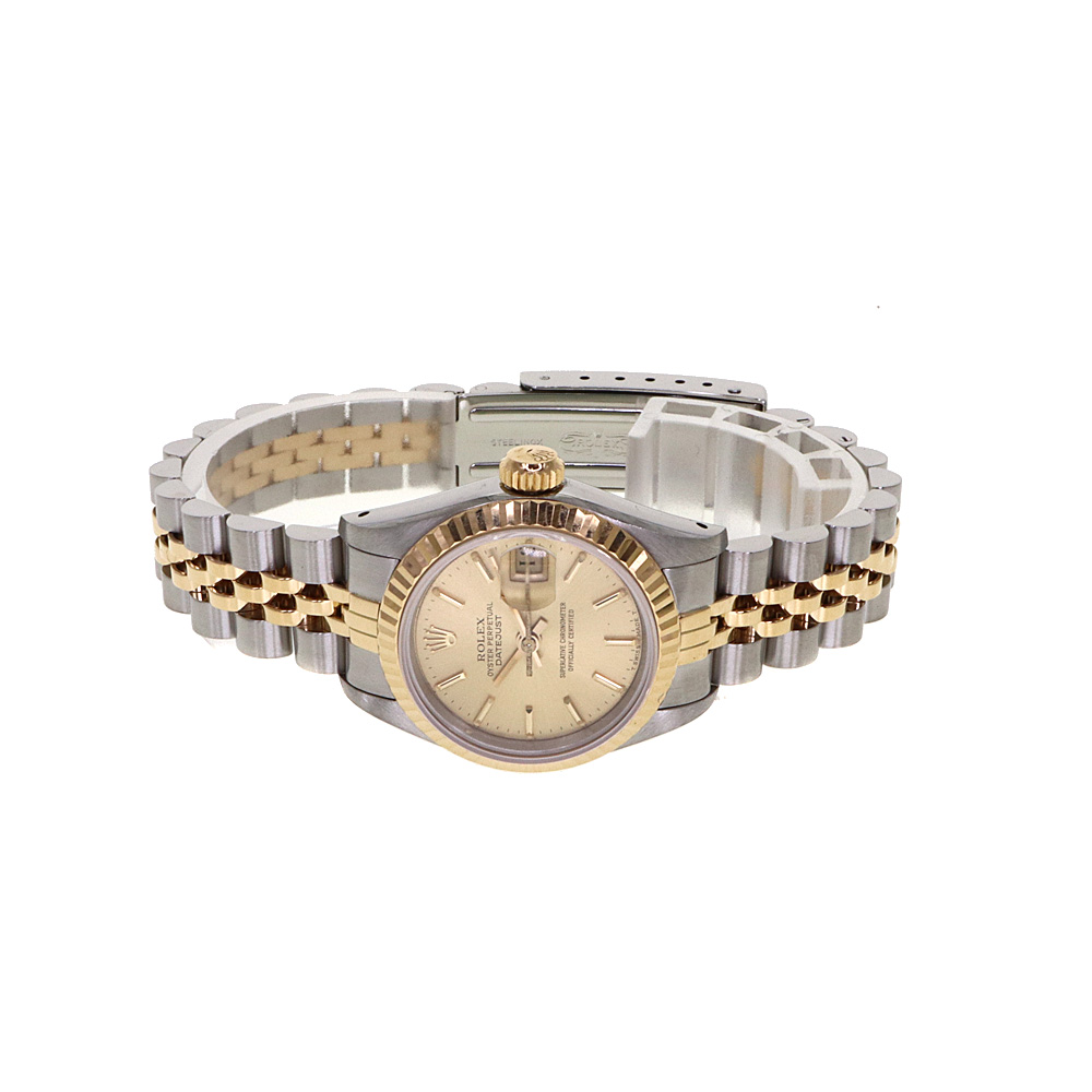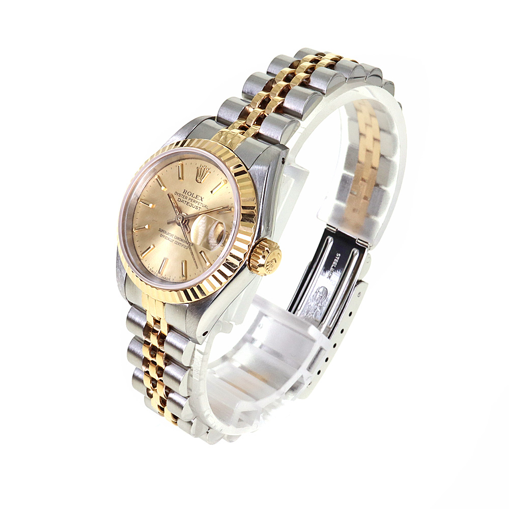 デイトジャストとは午前0時頃瞬時に日付が変わるデイトジャスト機構、全回転式ローターを搭載したパーペチュアル機構、ロレックス三大機構を搭載したモデルです。ゴールドの文字盤が非常に高級感があり、上品です。 この機会に是非いかがでしょうか。