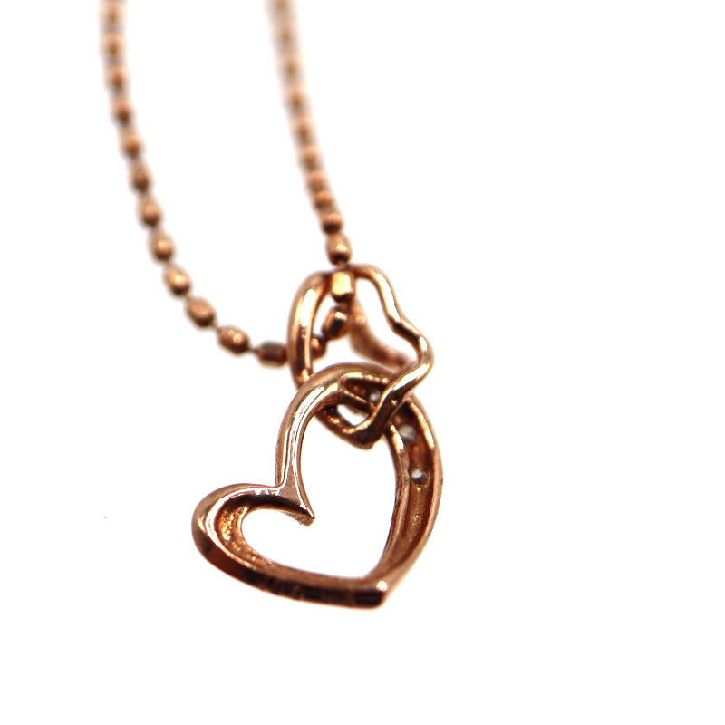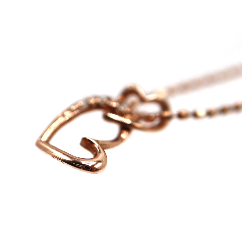 優しい色合いが魅力の10金ピンクゴールドに、上品なダイヤモンドが輝くネックレスです。