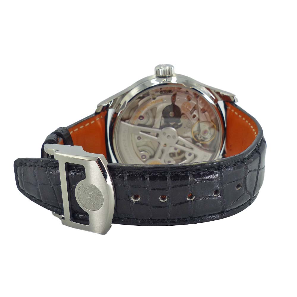 | 商品説明 | IWCは今からおよそ80年前に、ブランドを象徴するモデル「ポルトギーゼ」を誕生させました。現在の「ポルトギーゼ・オートマティック」には、アラビア数字のアップライトインデックスやレイルウェイ目盛りのチャプターリング、エレガントなリーフ針といった、コレクションを代表するデザインコードが美しく受け継がれています。さらに、サファイアガラスのシースルー裏蓋からは、精巧な機械式ムーブメントの動きを堪能することができます。