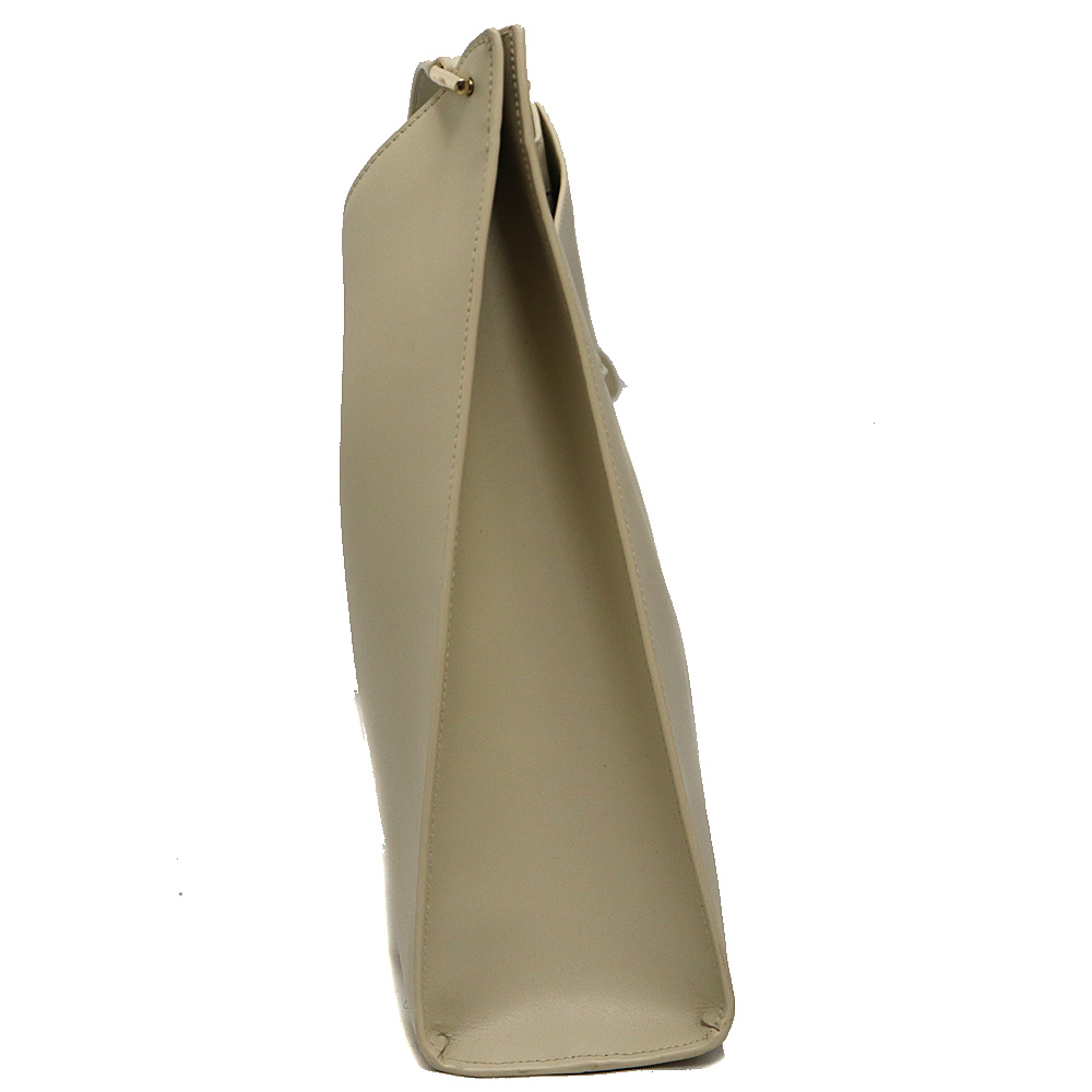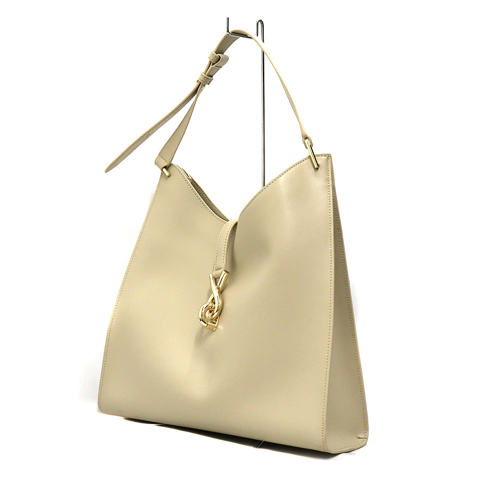 縦長の肩掛けタイプのバックになります。 お仕事バッグにも重宝しそうです。 アイボリーカラーが上品で開閉金具がワンポイントになります。 この機会にぜひいかがでしょうか。