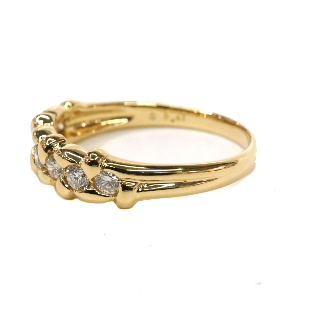 ダイヤモンドが7粒セッティングされたシンプルなデザイン。 重ね付けにもピッタリです。 この機会に是非いかがでしょうか。