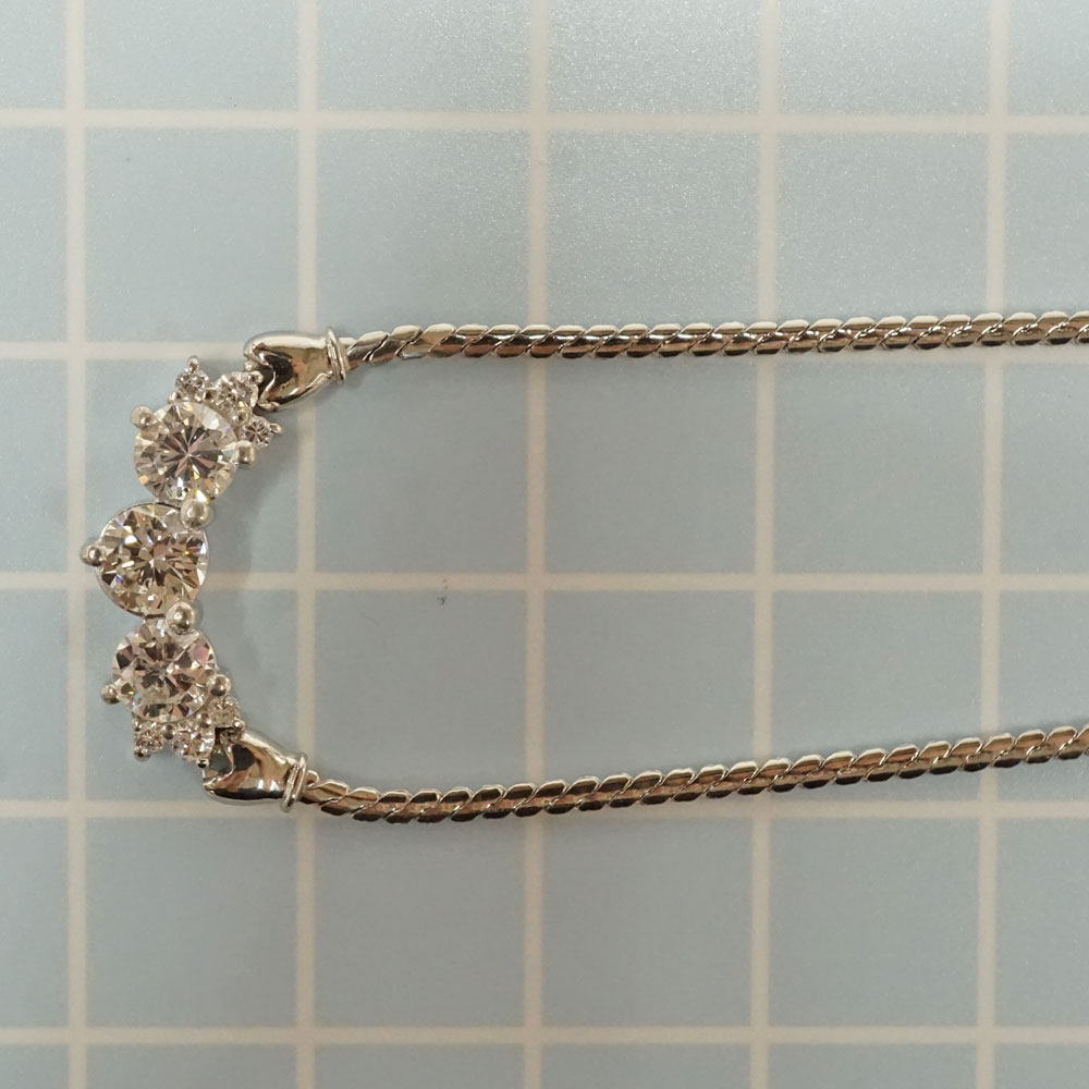 ダイヤモンドが綺麗に輝くデザインで程よい存在感あるネックレスです。 首元のアクセントにいかがでしょうか。