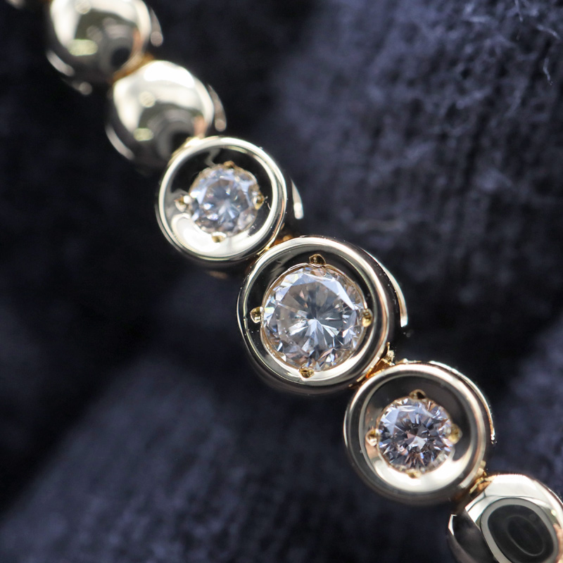 上質なK18ゴールドに、トータル0.20カラットのダイヤモンドをあしらったブレスレットです。