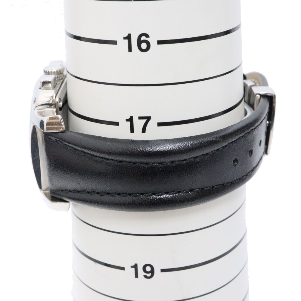 スクエアフォルムのケースが特徴的なデザイン。 時刻合わせが簡単なクォーツ式、デイト機能、クロノグラフも備わっており機能面でも問題ありません。 レザーベルトと合わさり、落ち着いた印象がありますので様々なシーンに合わせやすいお時計となります。 お探しの方はこの機会にぜひいかがでしょうか。