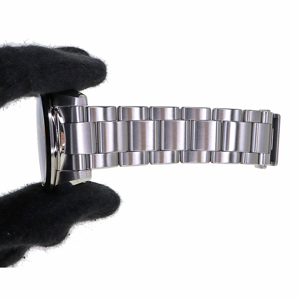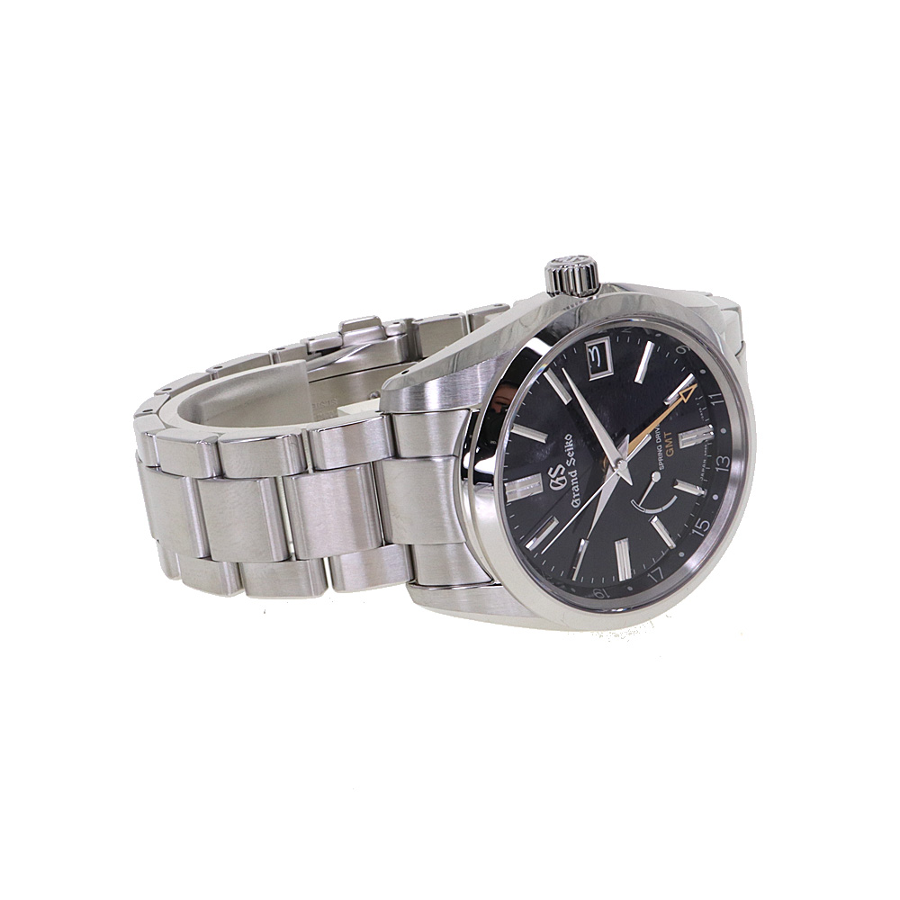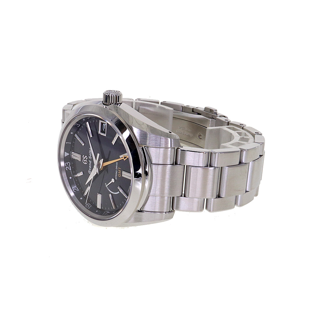 ダイヤルカラーは黒に近いミッドナイトブルーを採用し、グランドセイコーの王道デザインのケースと組み合わせたスプリングドライブGMTモデルです。 搭載されているスプリングドライブムーブメントは、ダイヤルの上をすべるように動く秒針が特徴の一つで、時の流れと調和するかのように自然に流れる秒針の動きは、ICの制御によって実現しています。 最大巻上時の持続時間は約72時間(約3日間)で、ダイヤル左下のパワーリザーブ表示で残りの持続時間を確認できます。 この機会に是非いかがでしょうか。