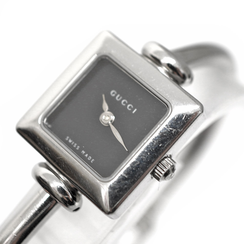 スクエアケースが特徴的なバングルデザインのお時計です。 アクセサリー感覚でつけることができるアイテムです。 お探しの方はこの機会にぜひいかがでしょうか。 ※尚、当サイトの販売金額より店頭での販売金額の方をお安く設定させて頂いております。予め、ご了承下さいませ。(一部セール品等除く) |