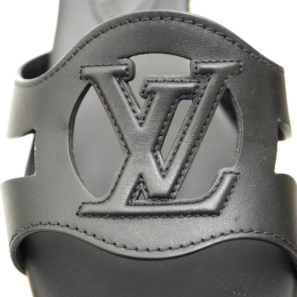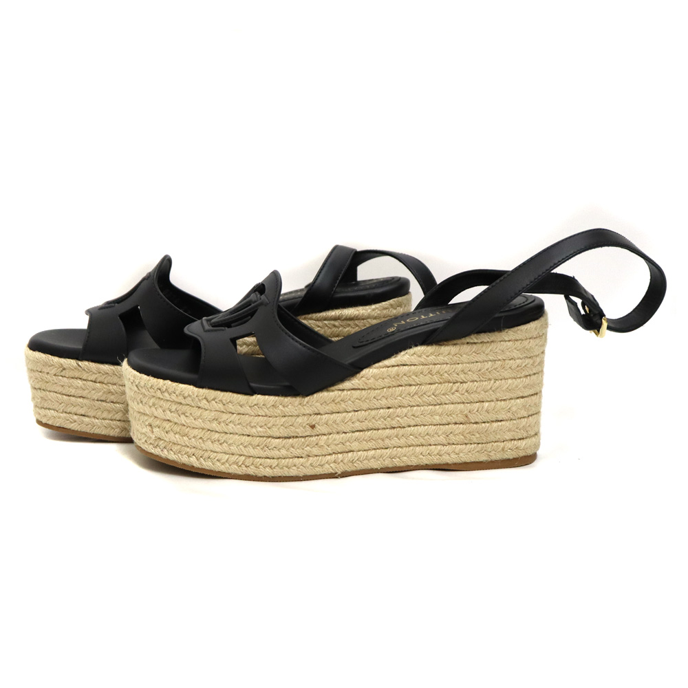 足が疲れにくいとされるウェッジソールデザインです。 レザーでかたどられたLVロゴがお洒落なアイテム。 この機会に是非いかがでしょうか。