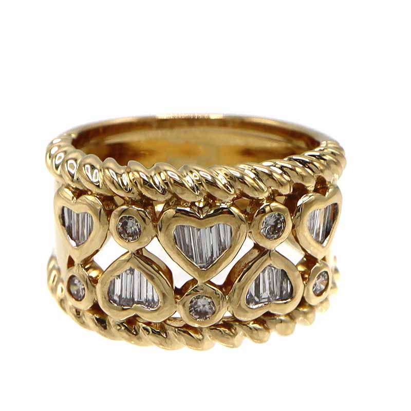 上質なK18ゴールドに、トータル0.52カラットのダイヤモンドをあしらった贅沢なリング。