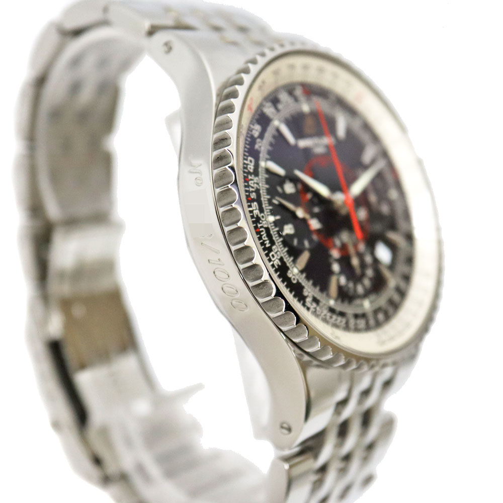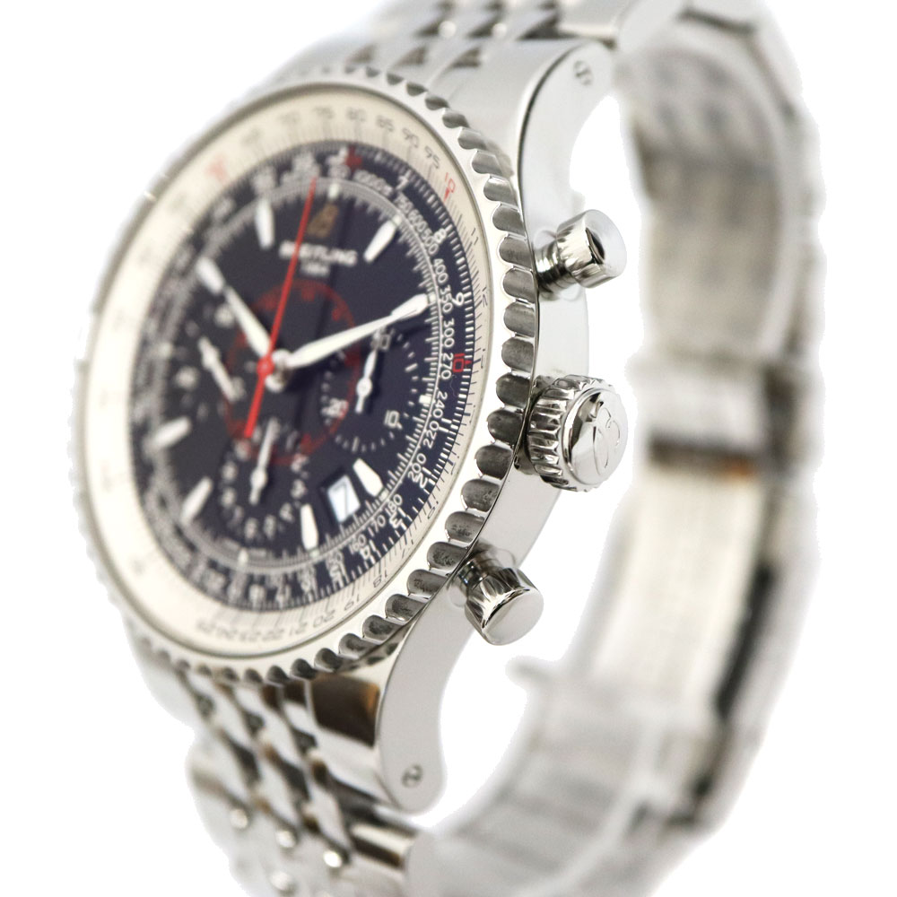 ナビタイマー最大のケース径47mm、モンブリランレジェンドの限定モデルです。 スポーティーなデザインに、30m防水、クロノグラフ、デイト機能などの性能も優秀なお時計です。 カジュアルからビジネスシーンまで活躍できるお時計ですよ。 お探しの方はこの機会にぜひいかがでしょうか。