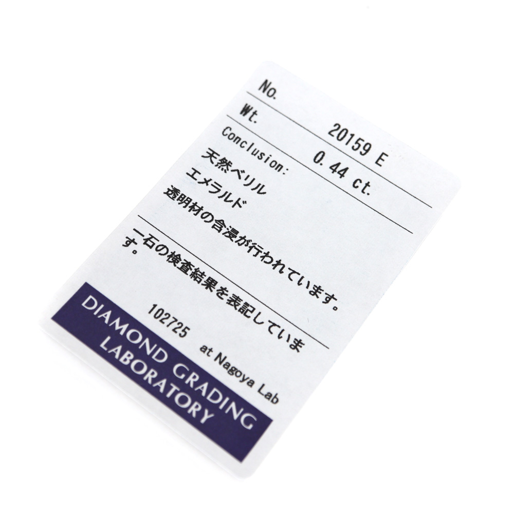 | 重さ | 総重量約:約5.3g エメラルド:0.44ct ダイヤモンド:0.49ct |