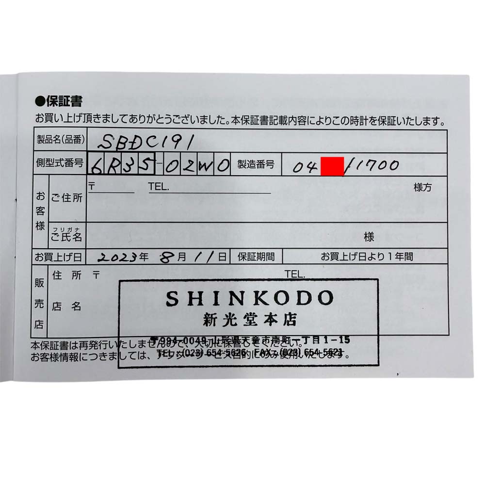 | 商品説明 | セイコーのSBDC191は、「プロスペックス ダイバースキューバ 大谷翔平2023限定モデル」としてリリースされた時計です。このモデルは、大谷翔平選手へのオマージュとしてデザインされており、特別な限定仕様になっています。耐水性や堅牢性に優れ、ダイバーズウォッチとしての性能も備えています。洗練されたデザインと高品質な素材が特徴です。