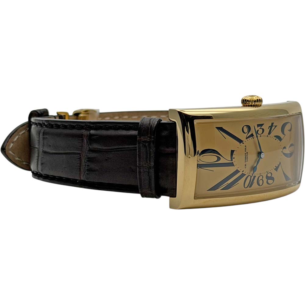 | 素材 | ケース:K18YG(イエローゴールド) ブレスレット:純正クロコダイルレザー(CROCODILE LEATHER) ダイヤル(色):シャンパンゴールド 風防素材:プラスチック |