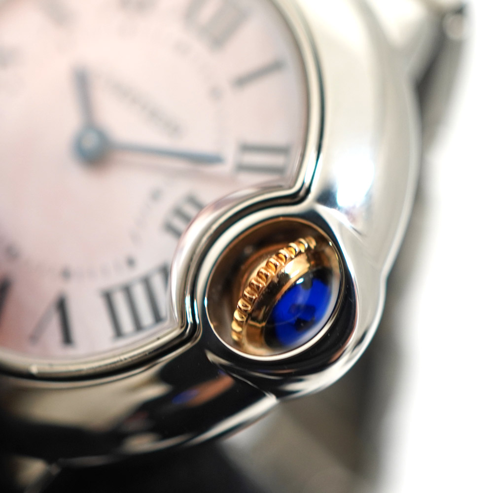 商品説明 | Cartier【カルティエ】のバロンブルーSMが入荷しました。 バロンブルーのバロンとは風船を意味しており、丸みを帯び文字盤は上品で可愛らしいピンクシェルのデザインとなっております。 こちらのバロンブルーは女性向けのモデルとなっておりケースサイズは28.0mmと小ぶりではありますが、視認性もよくデザイン面、機能面にも優れております。 お探しの方はこの機会にぜひいかがでしょうか。 ※尚、当サイトの販売金額より店頭での販売価格の方をお安く設定させて頂いております。予め、ご了承下さいませ。(一部セール品等除く) |