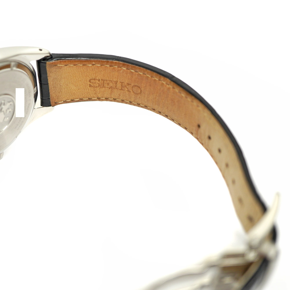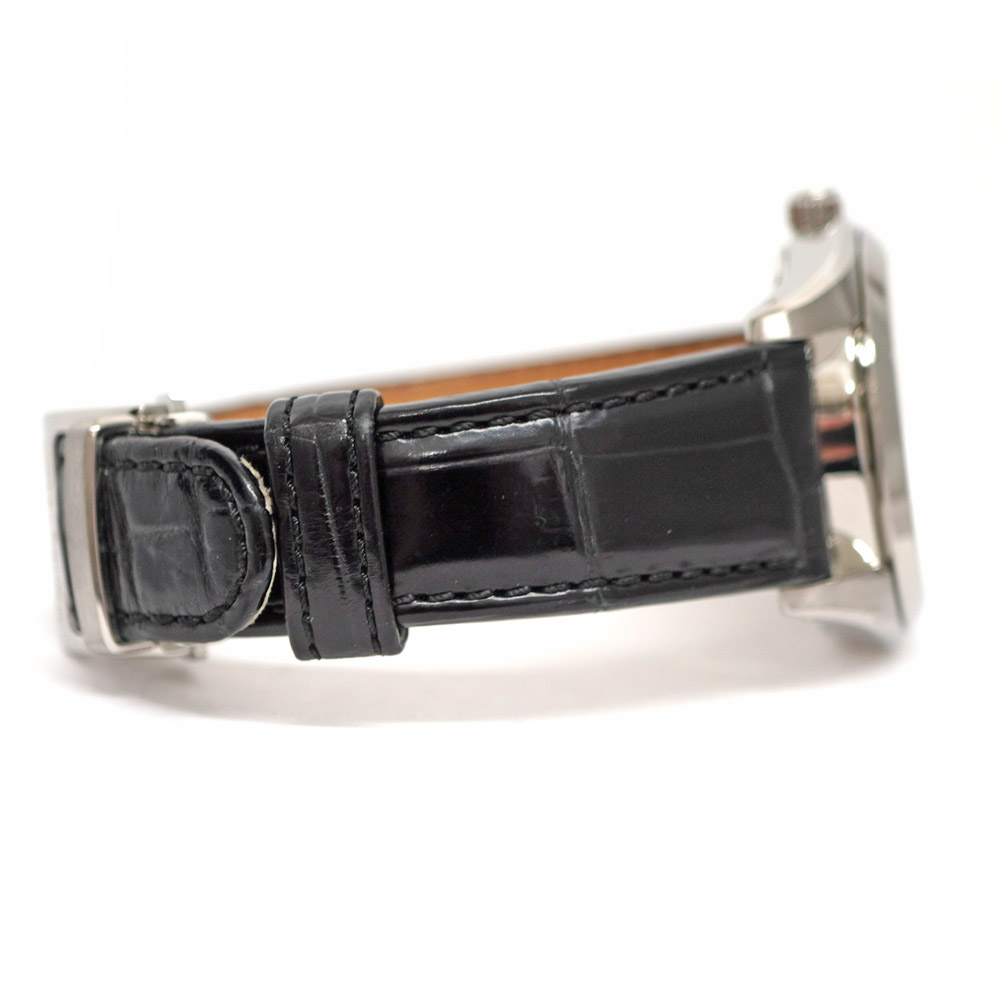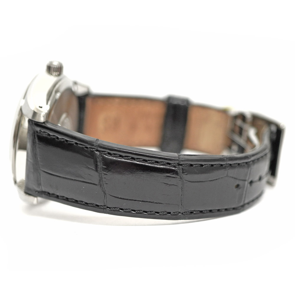 | 素材 | ケース:SS(ステンレススチール) ブレス:クロコレザー(ブラック) ダイヤル:白 ガラス:サファイア |