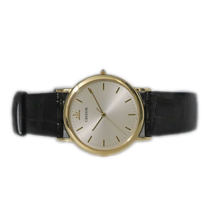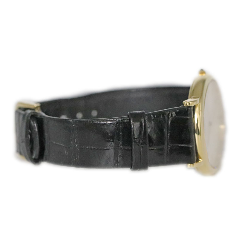 | 素材 | ケース:K18YG(イエローゴールド) ブレス:レザーブレスレット ダイヤル:シルバー系 ガラス:サファイアガラス |