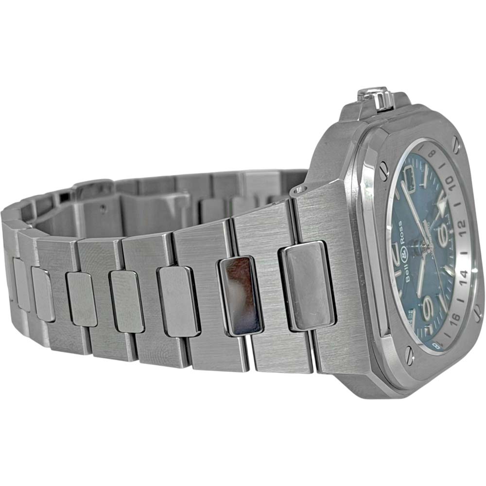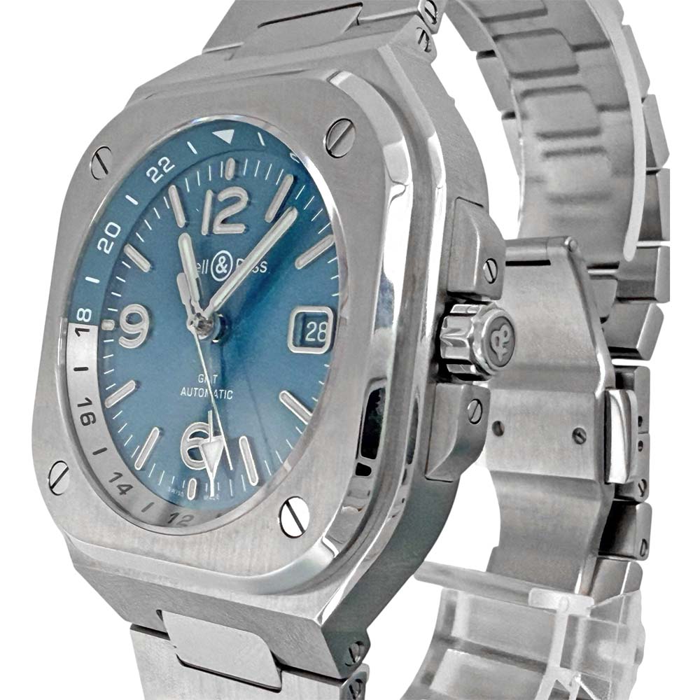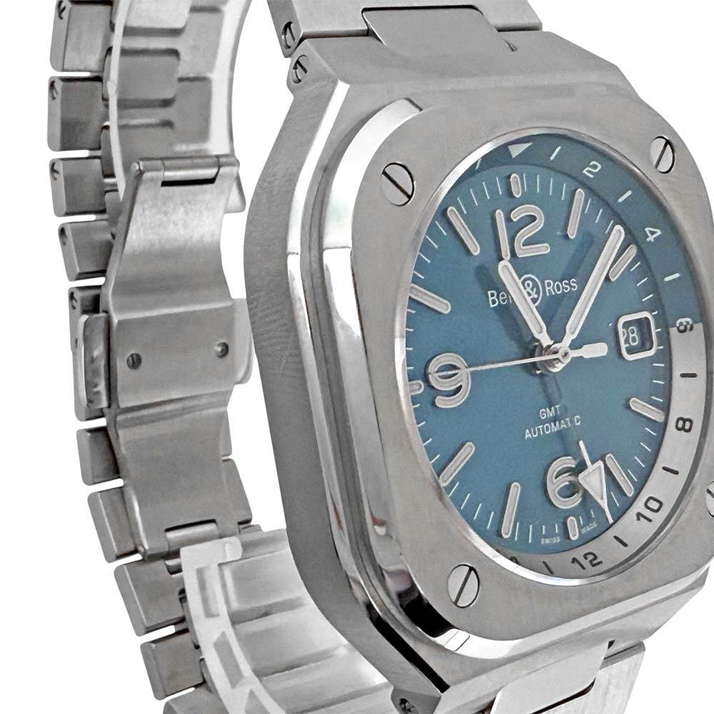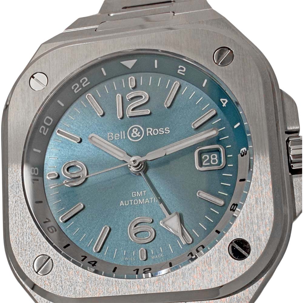 | 商品説明 | ベル&ロスのBR05G-PB-ST/SST、BR-05 GMT スカイブルーは、鮮やかなスカイブルーのダイヤルとGMT機能を備えたモデルです。ステンレススチール素材のケースとブレスレットが特徴で、視認性に優れたデザインが施されています。