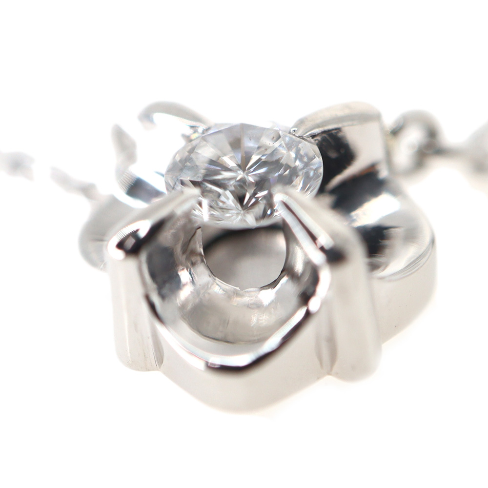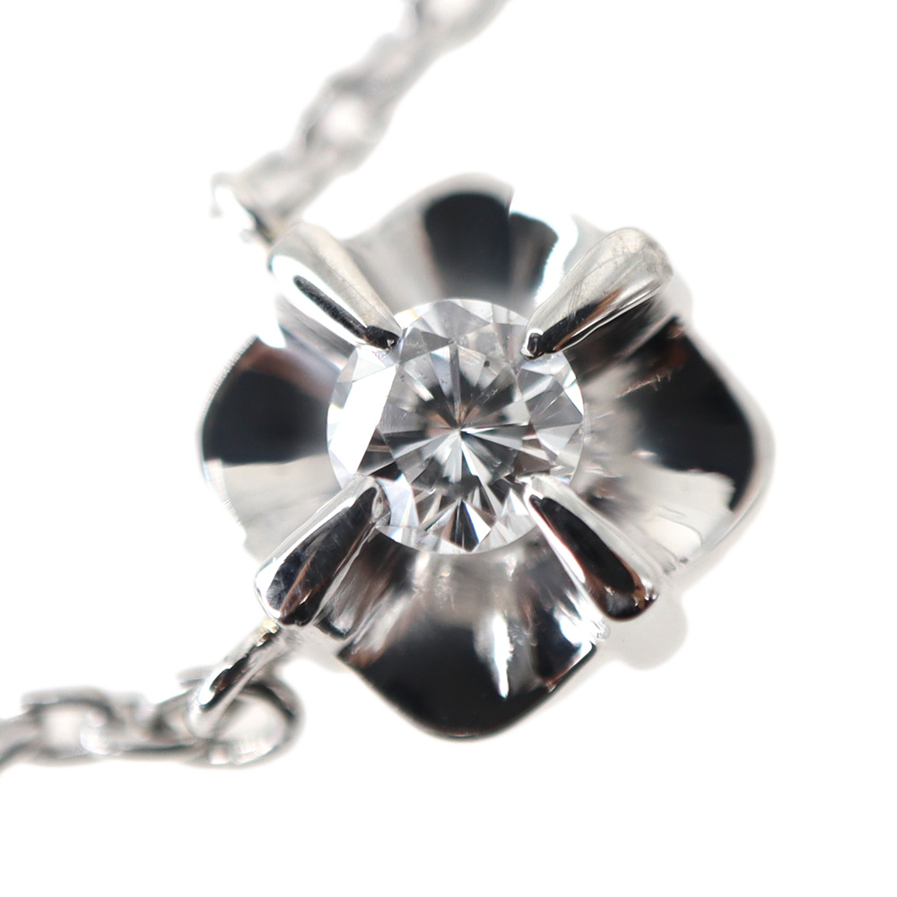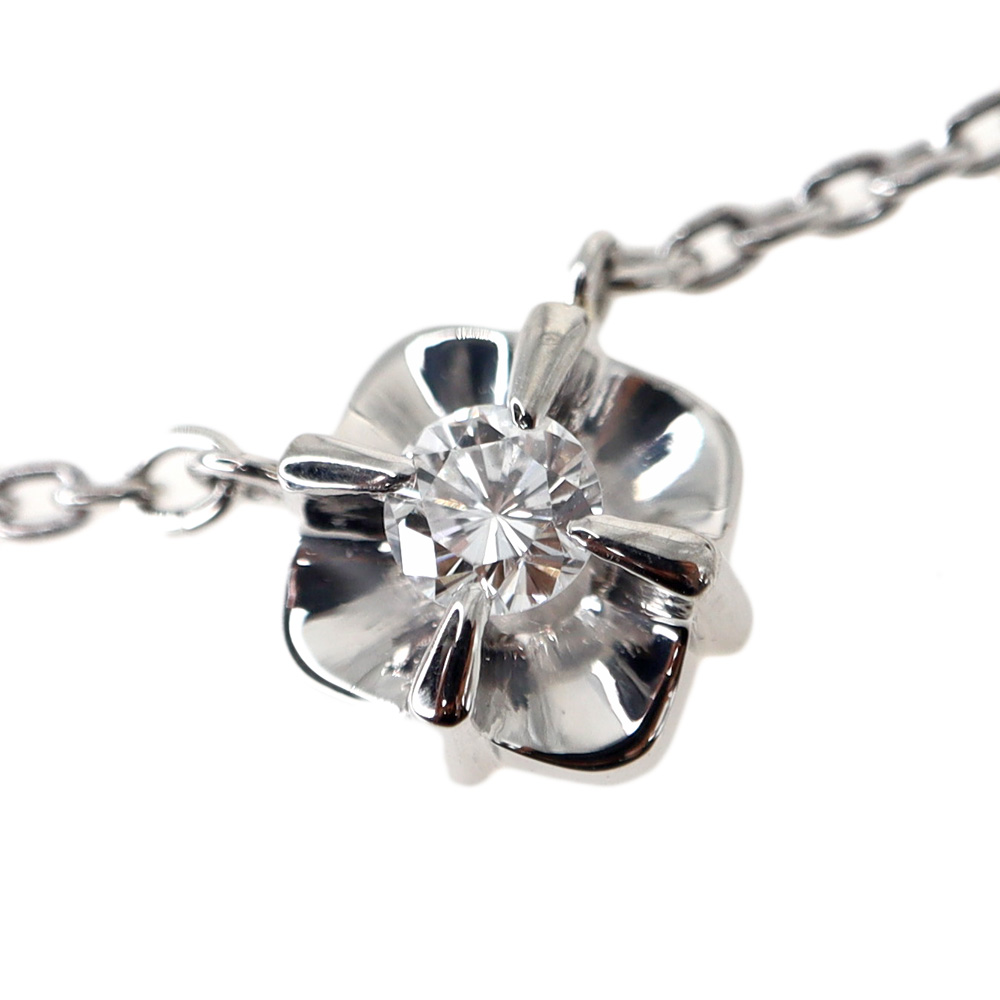 花弁のようなひし形のモチーフに小ぶりなダイヤモンドがセッティングされたネックレスです。 華やかなダイヤモンドですが全体的に小ぶりなサイズ感ですので上品な印象のお品となっております。 お探しの方はこの機会にぜひいかがでしょうか。