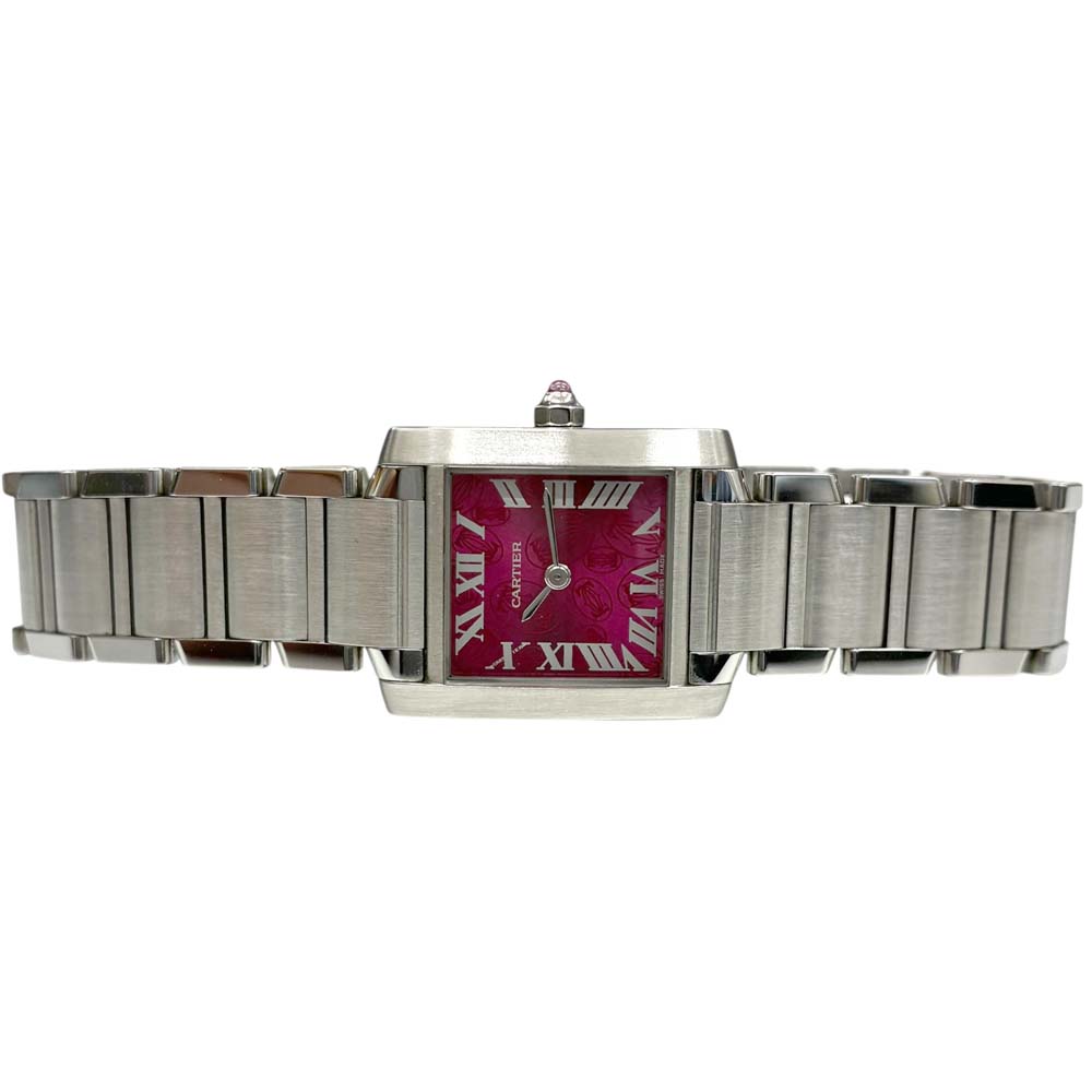| 商品説明 | カルティエのタンクフランセーズSM(モデルナンバーW51030Q3)は、優雅でクラシックなデザインの時計です。このモデルはステンレススチールのケースとブレスレットを使用し、シルバーオパーリン文字盤が特徴です。クォーツムーブメントを搭載し、日常の使用に適した機能性を備えています。タンクシリーズ特有の直線的なフォルムと、エレガントな外観が人気です。