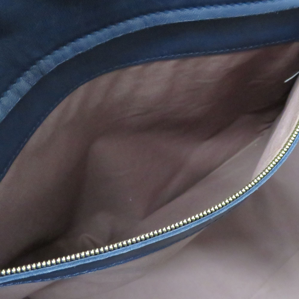 ネイビーカラーのボディにブラウンのレザーの持ち手がオシャレなトートバッグです。