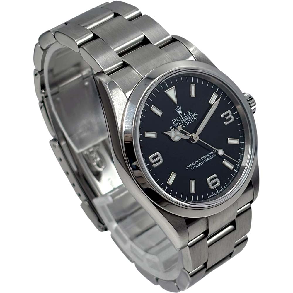 | 商品説明 | ロレックスのエクスプローラー 1、モデル番号114270は、クラシックでありながら洗練されたデザインの腕時計です。このモデルはステンレススチール製で、高い耐久性を持つケースとブレスレットが特徴です。文字盤はブラックで視認性が高く、アラビア数字が3、6、9の位置に配置されています。ロレックス独自の自動巻きムーブメントを搭載しており、日常生活での高い信頼性があります。シンプルながらエレガントなデザインで、多くの方に愛用されています。