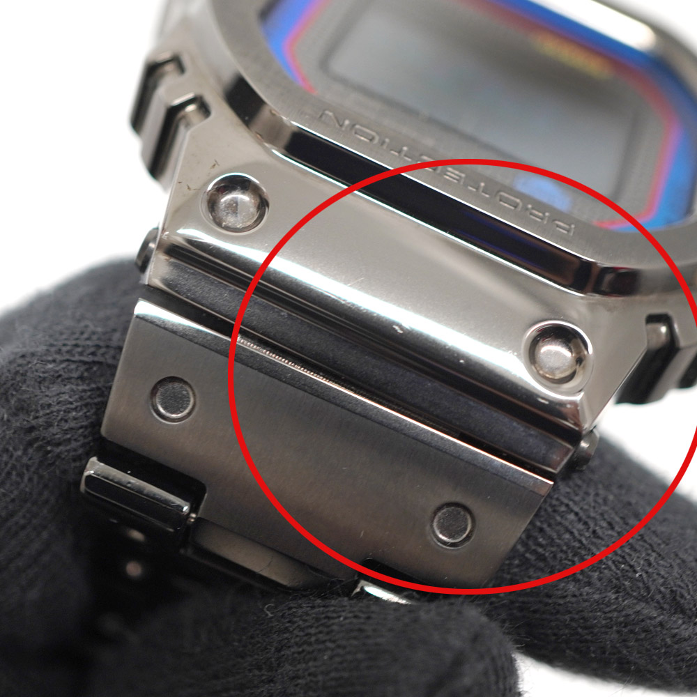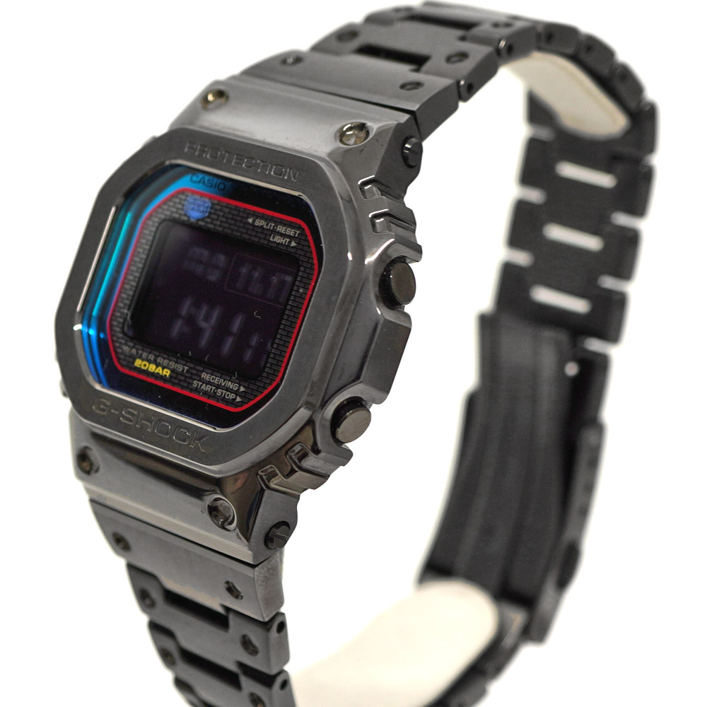 SHOCKのフルメタルシリーズから、レインボーカラーをアクセントにしたモデルです。 ケースデザインは初代G-SHOCK(DW-5000)のスクエアデザインを採用し、タフソーラーやモバイルリンク機能などを搭載しております。 お探しの方は是非この機会にいかがでしょうか。