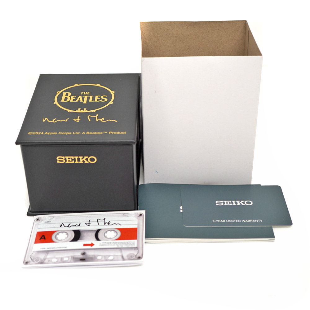 | 商品説明 | SEIKO【セイコー】とビートルズコラボしたお時計のご紹介です。 ザ・ビートルズの“最後の新曲”として2023年11月2日に全世界で配信され、瞬く間に話題を呼んだ『NOW AND THEN』 楽曲から着想を得てデザインされた「NOW AND THEN メモリアル腕時計」です。 文字盤ガラスにはビートルズ4人のサインがで浮かび上がっております。 またアップル・レコードのリンゴマーク形にくり抜いた機械の心臓部と裏蓋はシースルーバッグに限定2023点のエディションナンバーが刻印されております。 お探しの方はこの機会にぜひいかがでしょうか。 ※尚、当サイトの販売金額より店頭での販売価格の方をお安く設定させて頂いております。予め、ご了承下さいませ。(一部セール品等除く) |