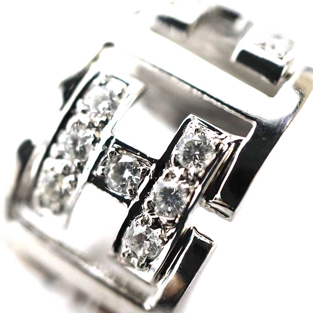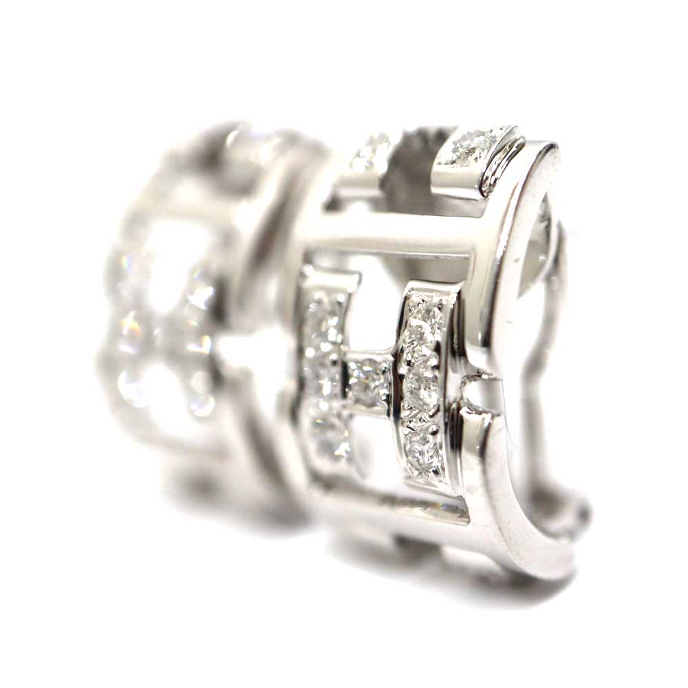 「H」の文字にも見える、大ぶりなピアスです。 0.25ctのダイヤモンドが輝き、耳元のワンポイントにぴったりです。 この機会に是非いかがでしょうか。