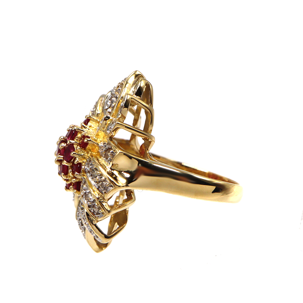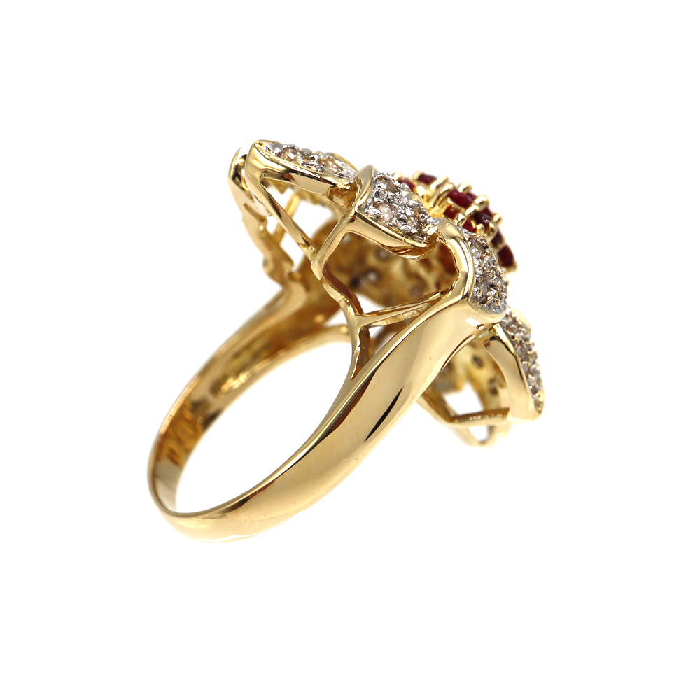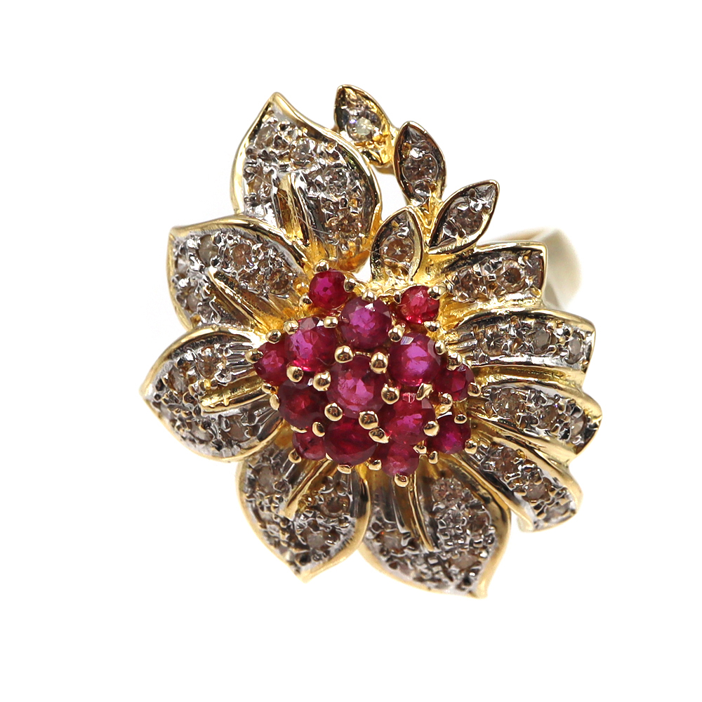鮮やかなルビー1.15ctと、繊細に煌めくダイヤモンド0.65ctを贅沢にあしらった、華やかさあふれるK18リングです。