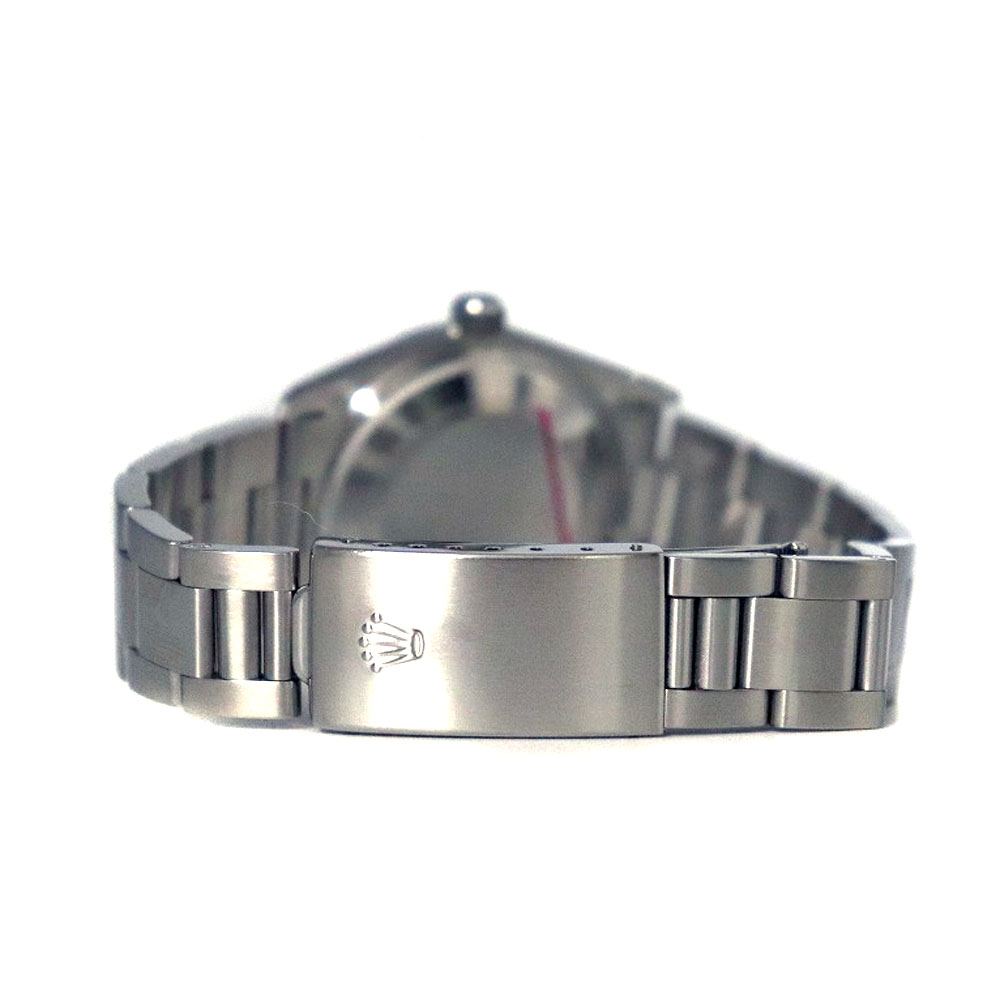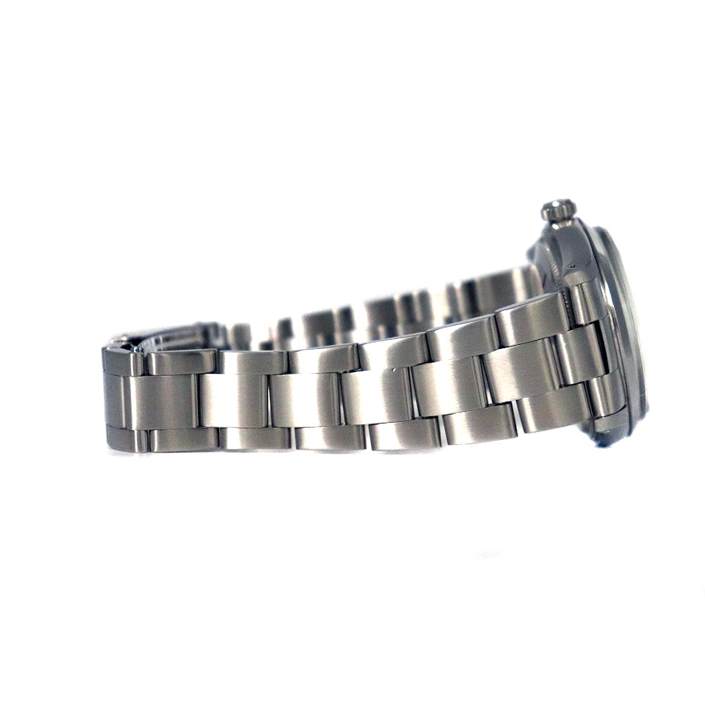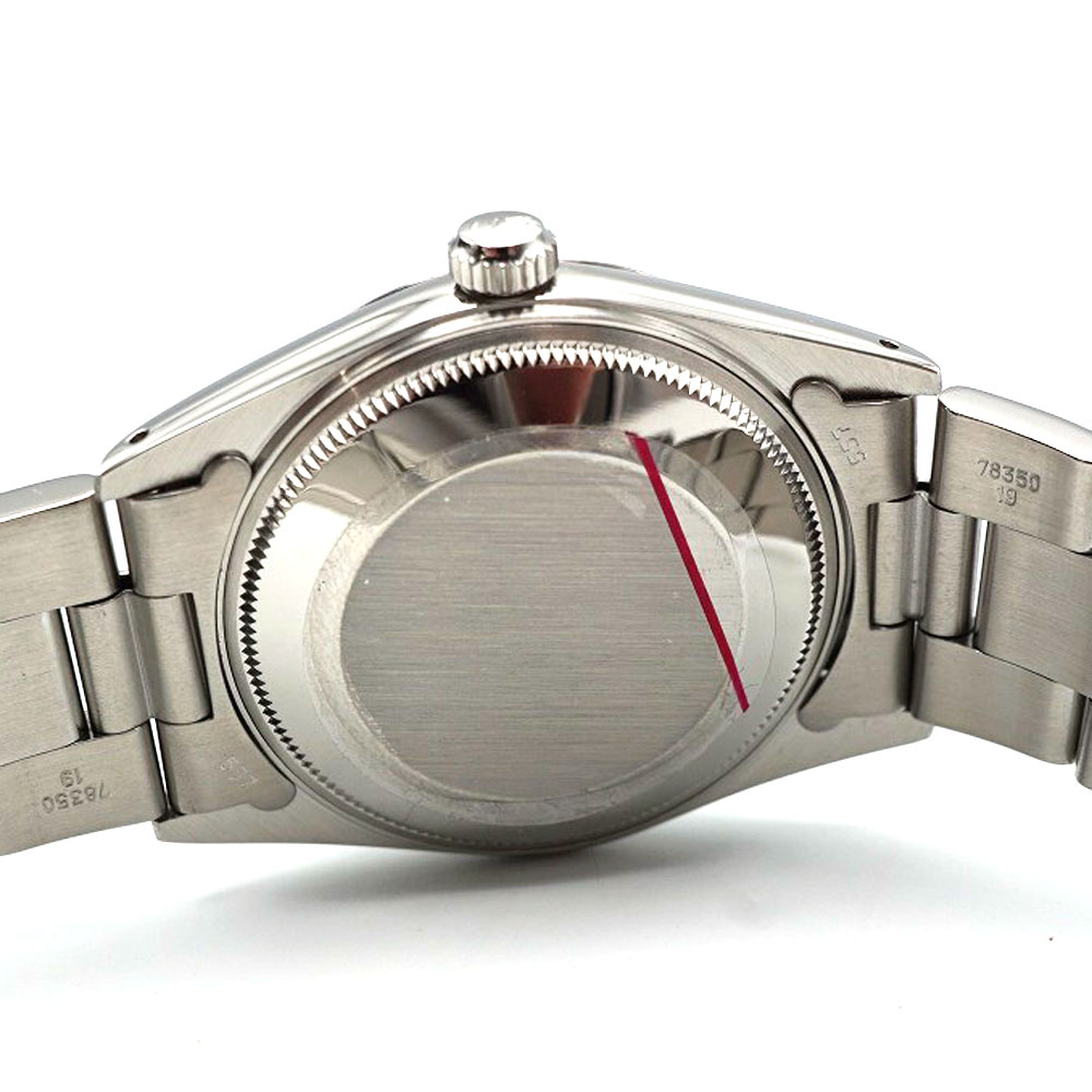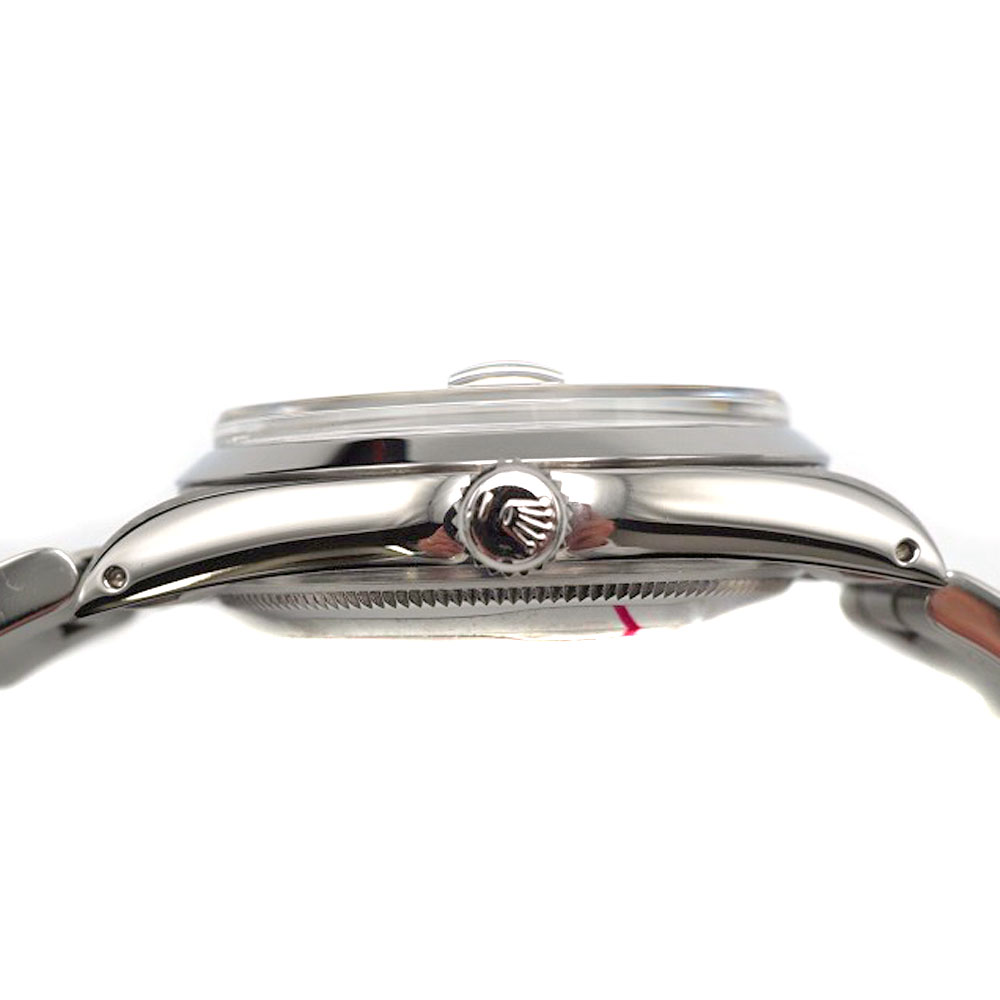 毎時28800振動のムーブメントを搭載したオイスターパーペチュアルデイトです。 搭載されるCal.3035にはカレンダーの早送り機能を備えられており、日常の中で使い勝手の良いお時計です。 また、ケースサイズ約34mmであり、幅広い方が嫌みなく装着できる大きさになります。 シルバーの文字盤とシンプルなデザインのため、年代問わずお使いいただけます。