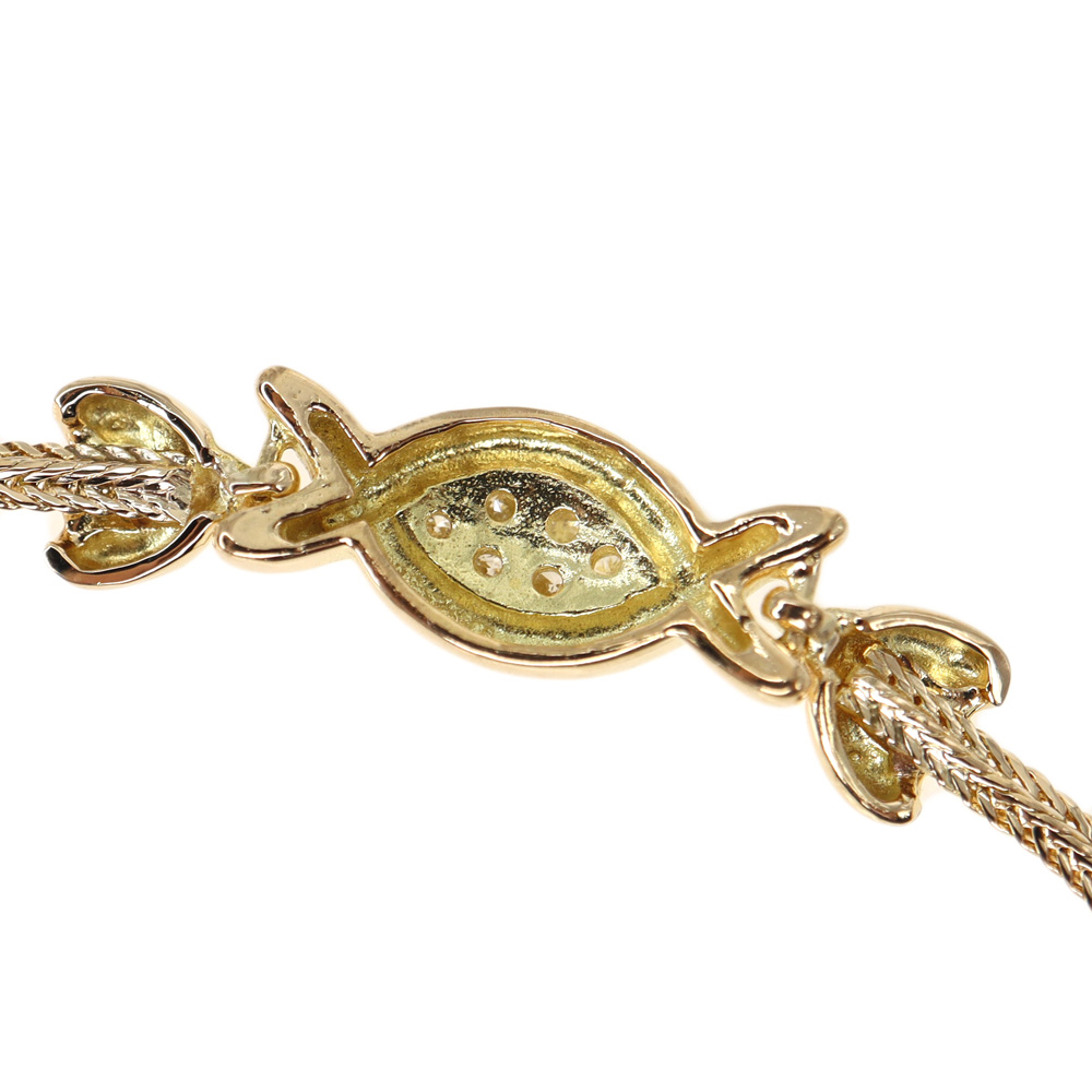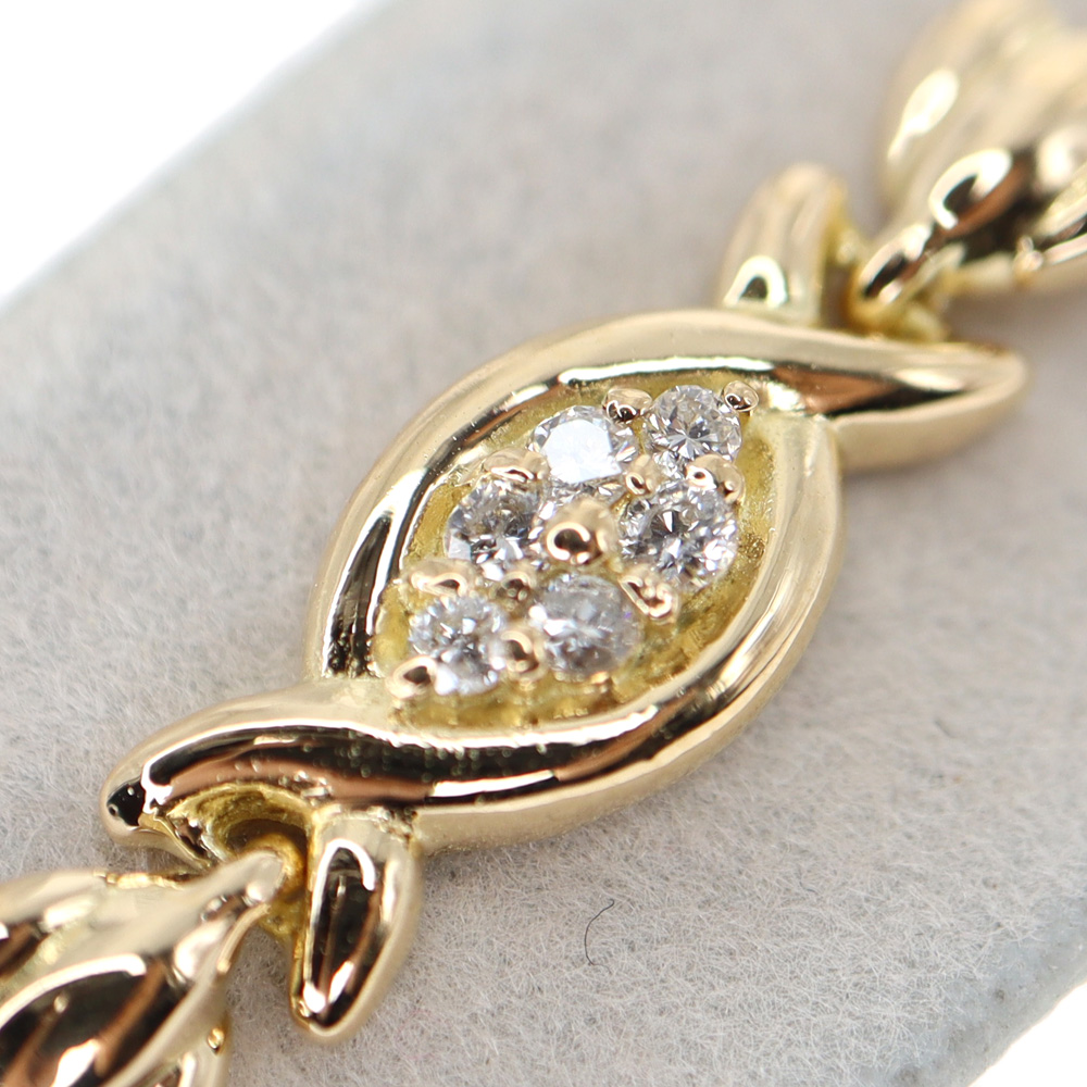 | 商品説明 | K18【18金】ダイヤモンド ブレスレットのご紹介です。 特徴的な中央部分のデザインが目を惹くブレスレットです。 計0.52ctのダイヤモンドがセッティングされており、細やかながら華やかさのあるデザイントなっております。 お探しの方はこの機会に是非いかがでしょうか。