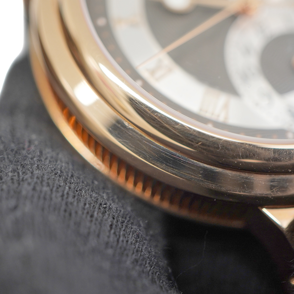 | 素材 | ケース:K18PG(18金ローズゴールド) ブレス:レザー ダイヤル:グレー 風防:サファイアクリスタル |