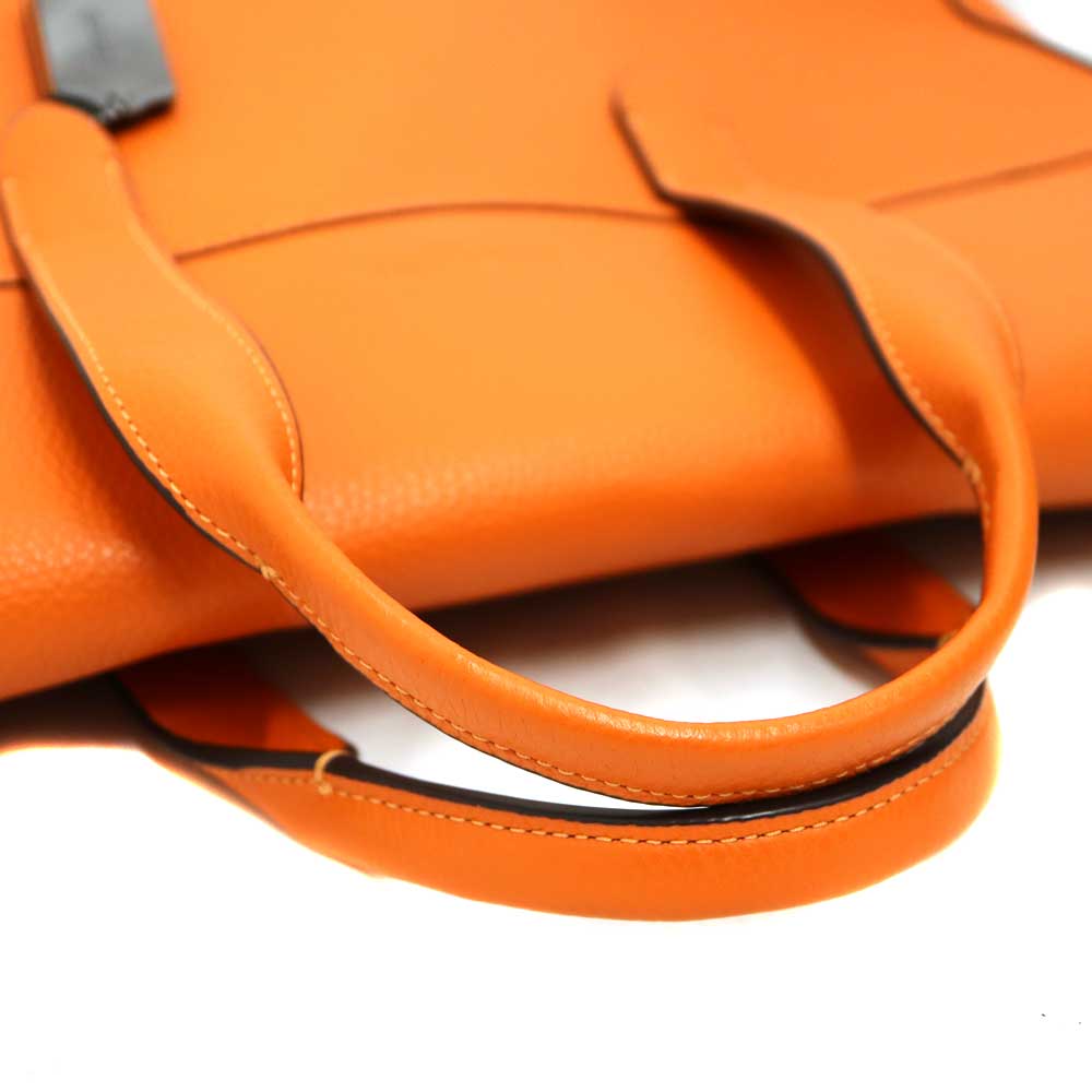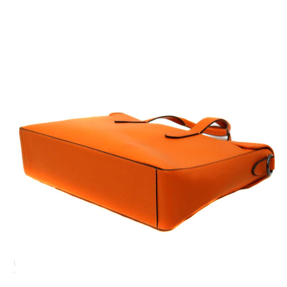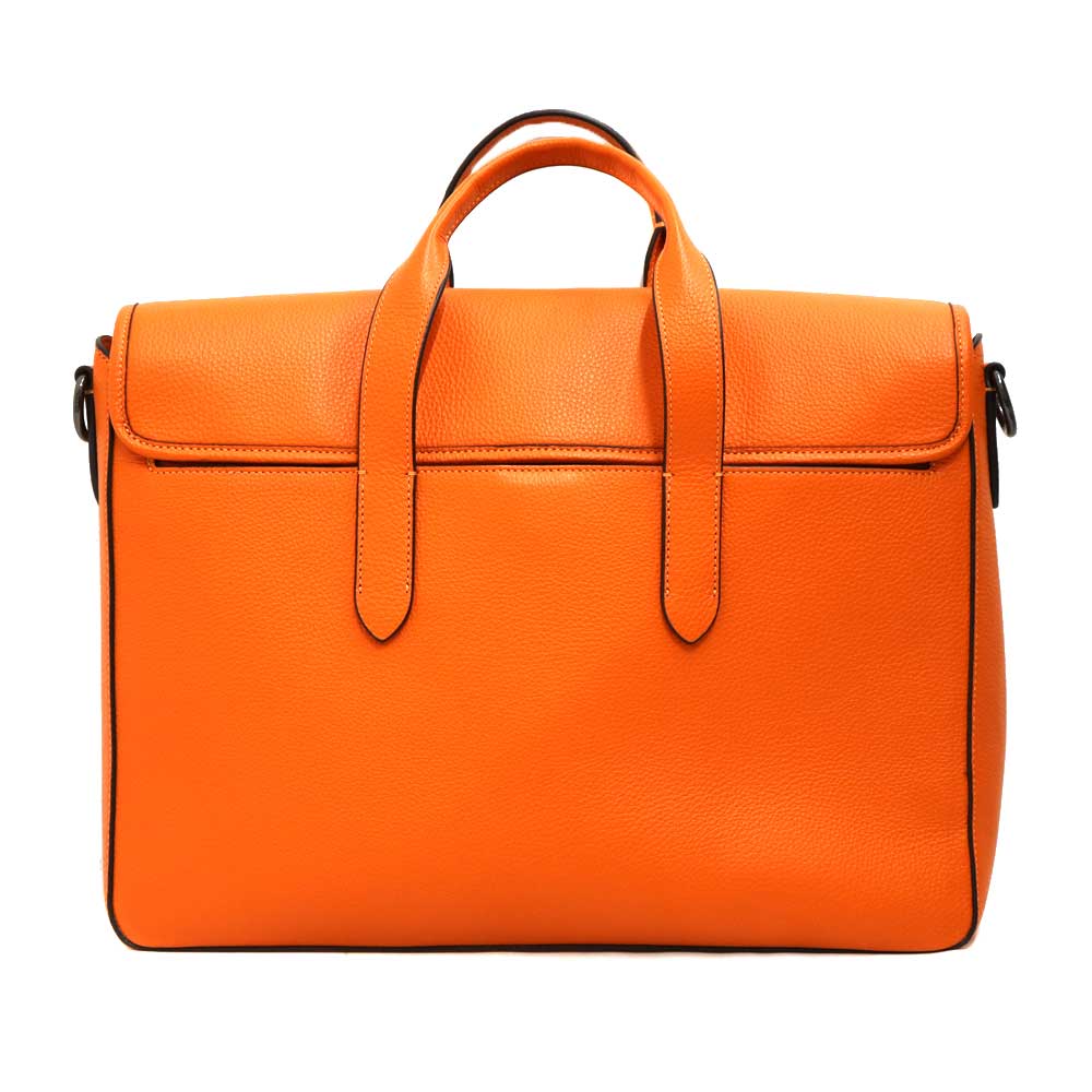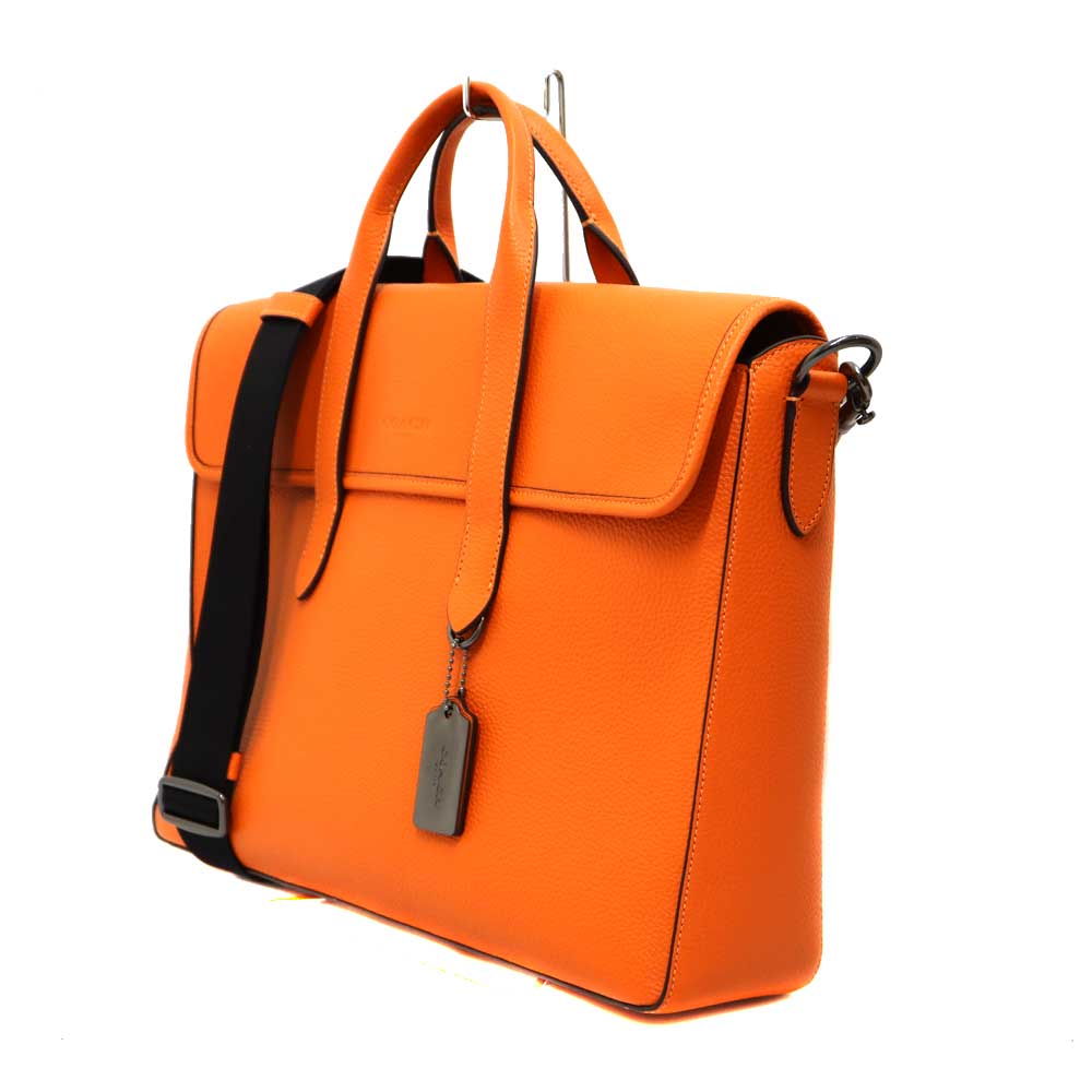 鮮やかなオレンジが目を惹く、柔らかな手触りと耐久性を両立した素材のブリーフケースです。 内部にはパソコンを入れられるポケットなどがあり、書類や小物をスマートに収納できます。 この機会にぜひいかがでしょうか。