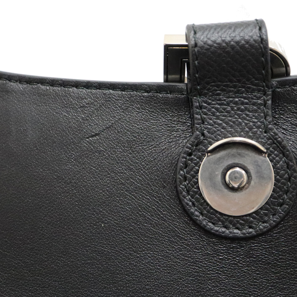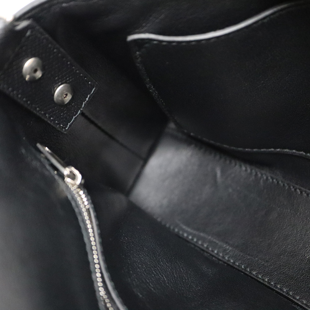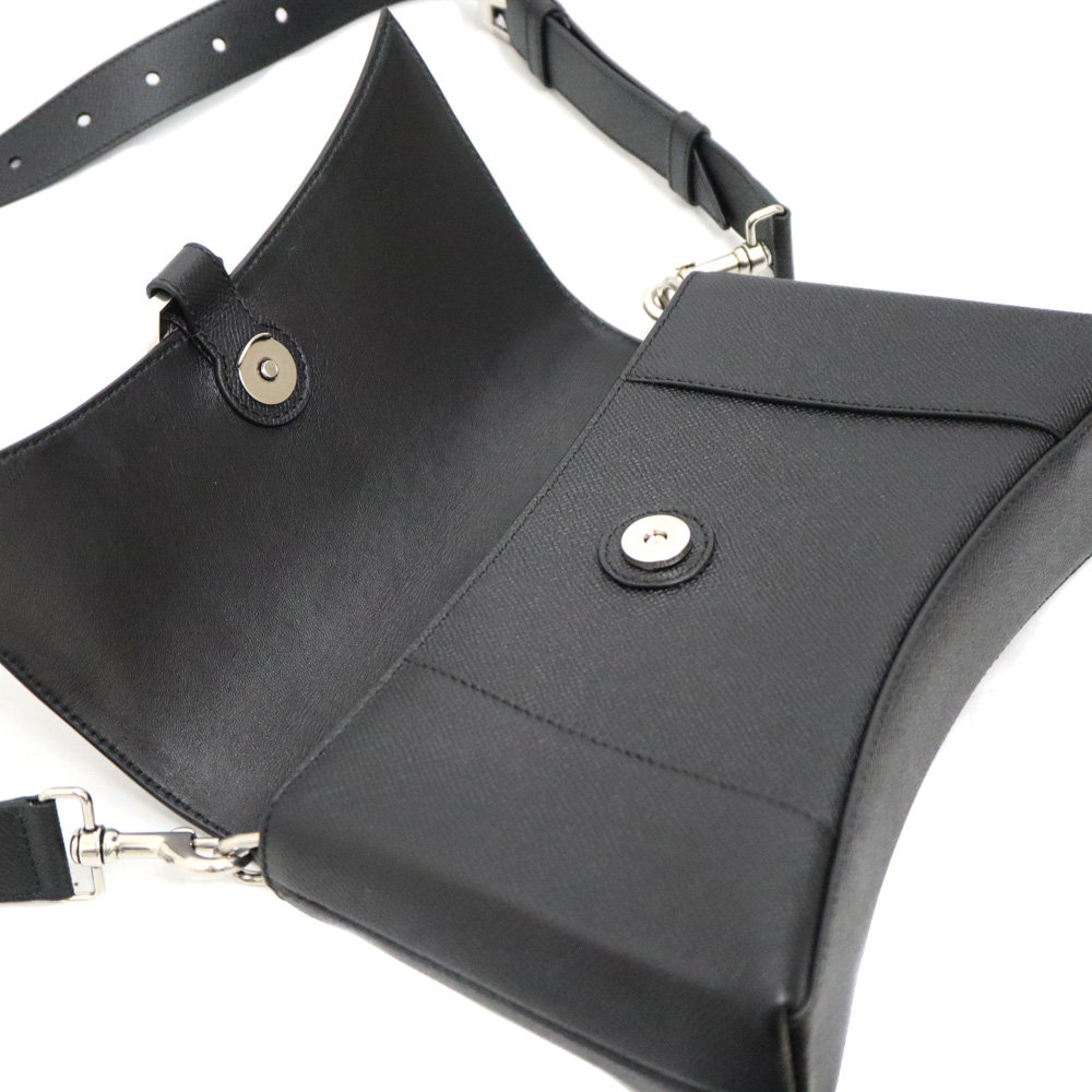 ブラックレザーに開閉金具に[B]のロゴ金具がアクセント。 形も奇抜すぎないのに一度見たら記憶に残る不思議な感覚。 コンパクトに収納しスマートに持ち運べるサイズ感がおすすめ。 この機会にぜひいかがでしょうか。