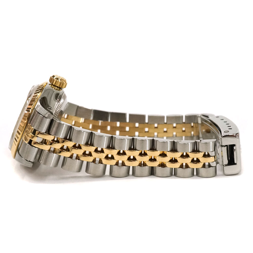 ■美しいカッティングが施されたフルーテッドベゼルとブレスレット中央パーツに18Kイエローゴールドを使用したラグジュアリー感溢れるモデルですので、手元を華やかにしてくれます。