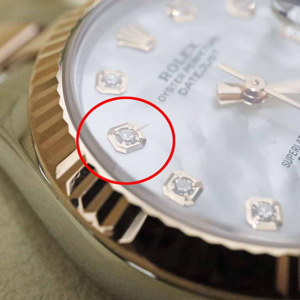 | 素材 | ケース:ステンレススチール×K18エバーローズゴールド ブレス:ステンレススチール×K18エバーローズゴールド ダイヤル:マザーオブパール文字盤/10Pダイヤモンド 風防(ガラス):サファイアクリスタル |
