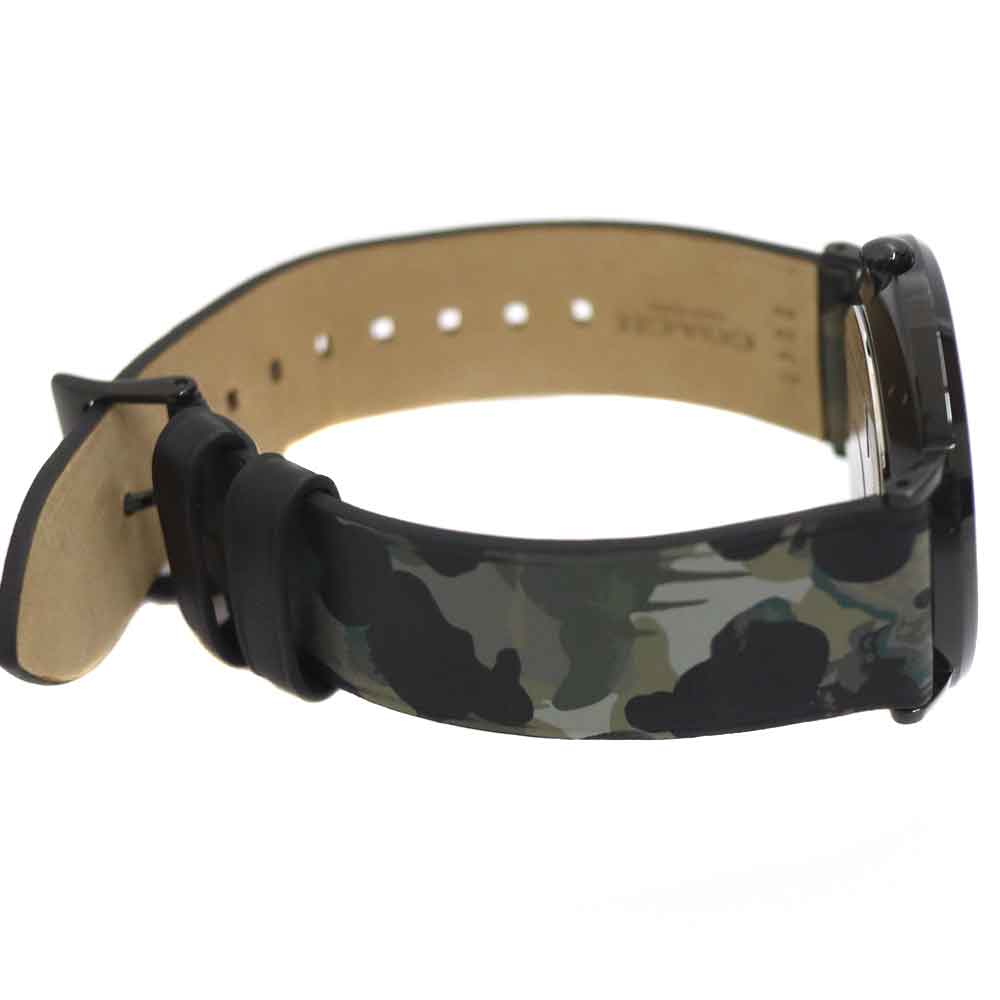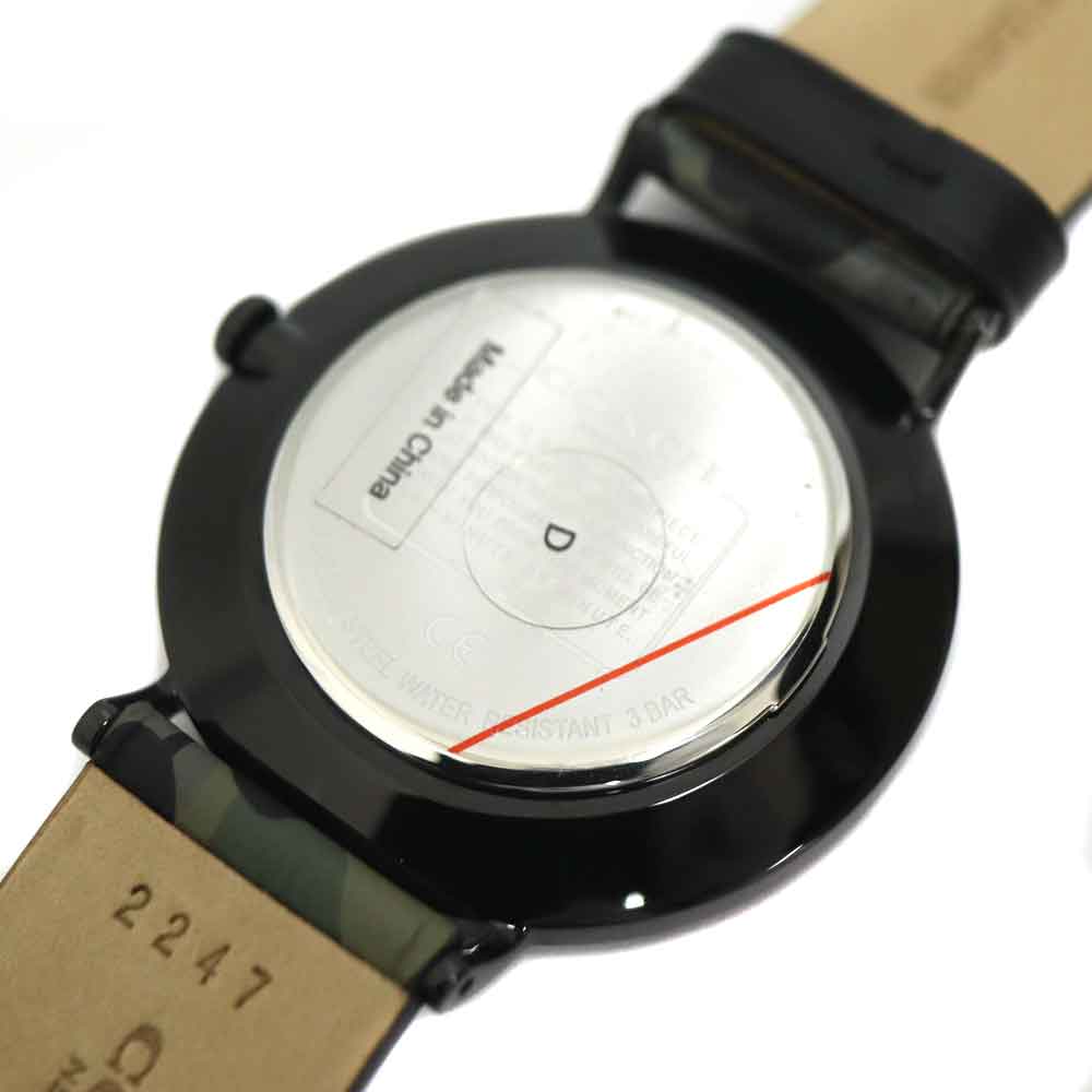 ブラックを基調としたメンズ時計です。 大きめのケースなので視認性に優れています。 カモフラージュ柄のベルトもオシャレです。 この機会にぜひいかがでしょうか。